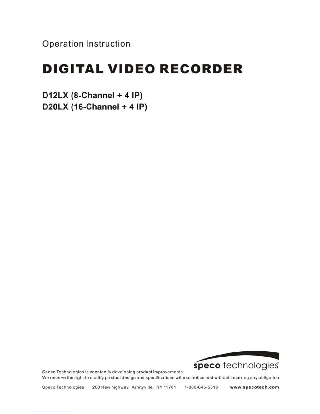 If you are experiencing no live video on your Speco DVR, check the following: * Camera video cable and connections. * Monitor video cable and connections. * Confirm that the camera has power. * Check camera lens settings.