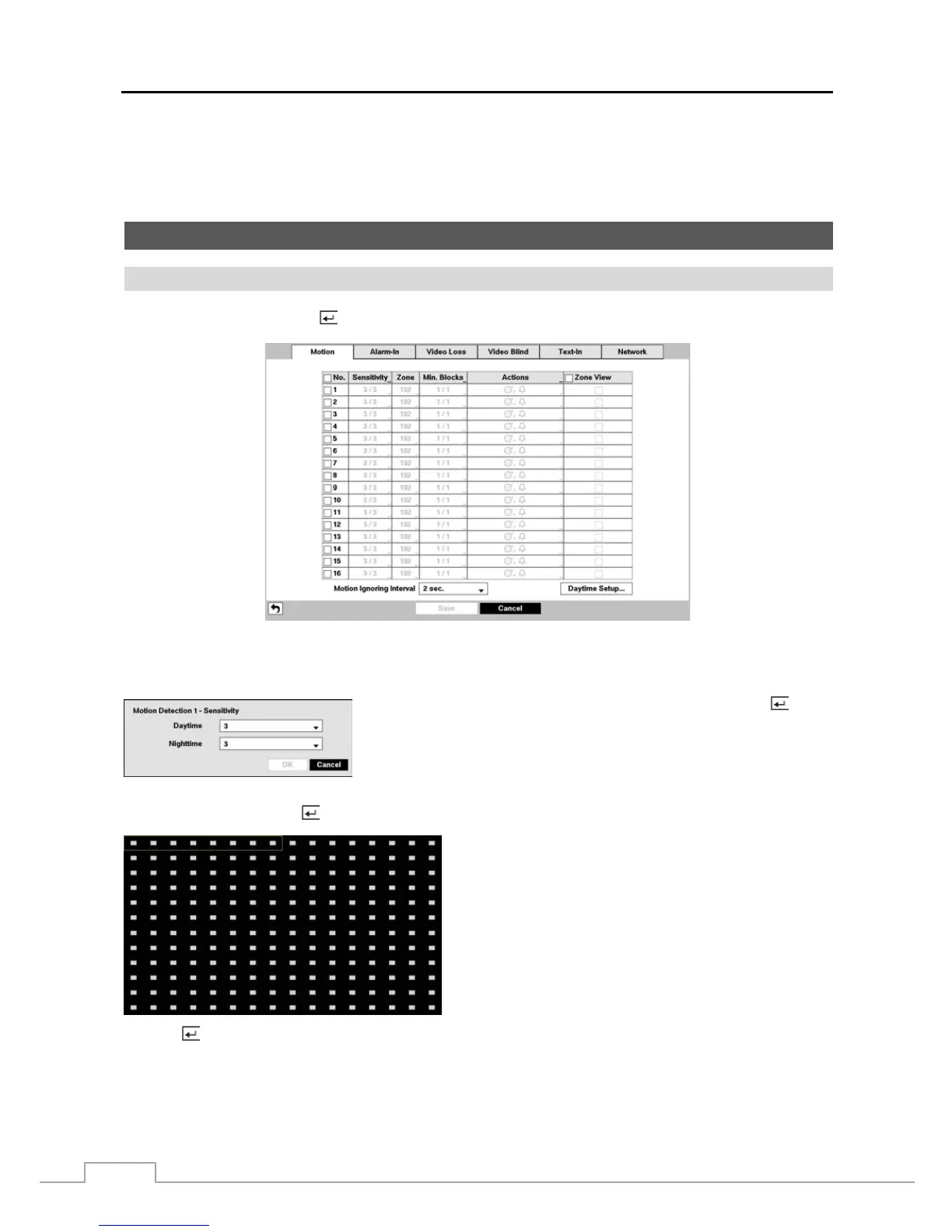 allows you to adjust the DVR’s sensitivity to motion for Daytime and Nighttime
