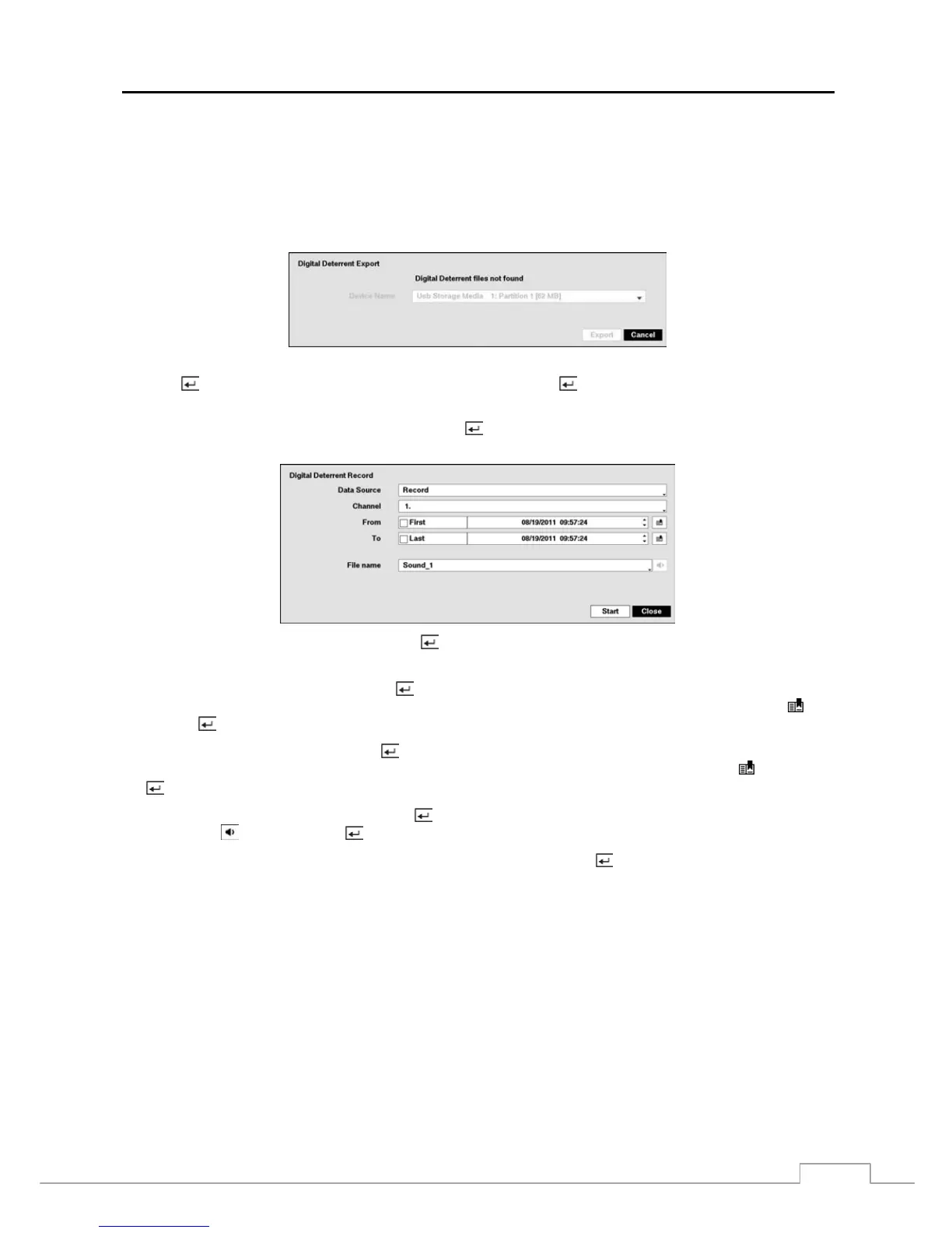 To export the current audio files, connect the USB device to the DVR. Highlight Digital Deterrent – Export… and
