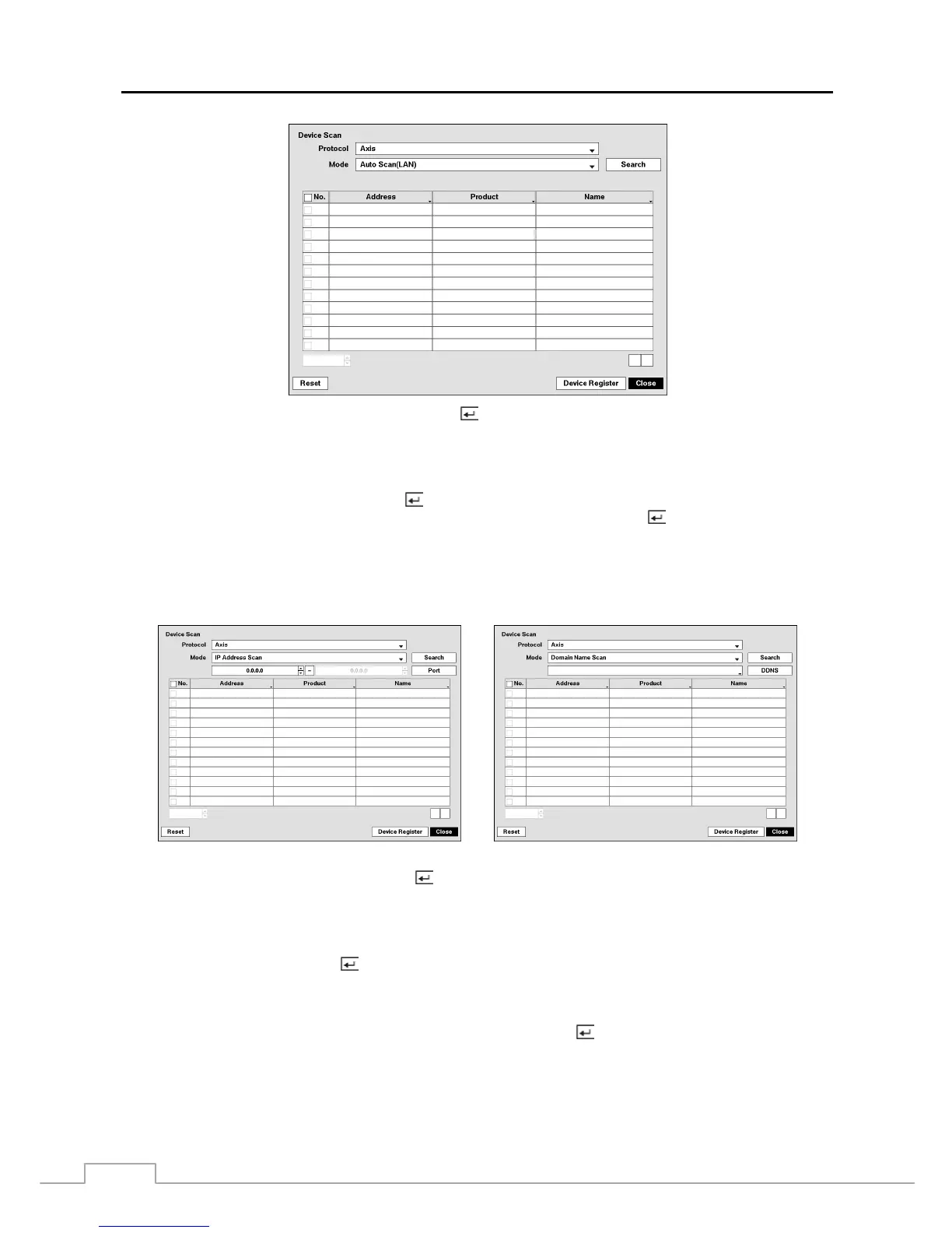 NOTE: Using the IP Address Scan, you can search for a network device that cannot be searched for using the