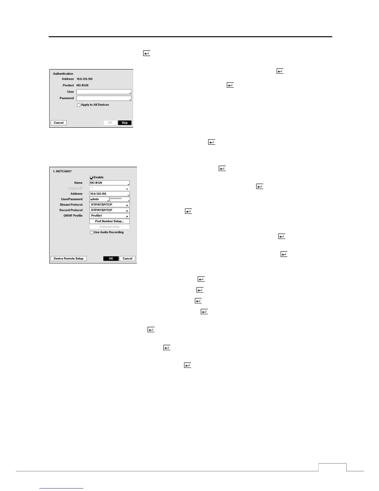 screen appears. Setting up the Authentication is required to register the network device to the DVR.