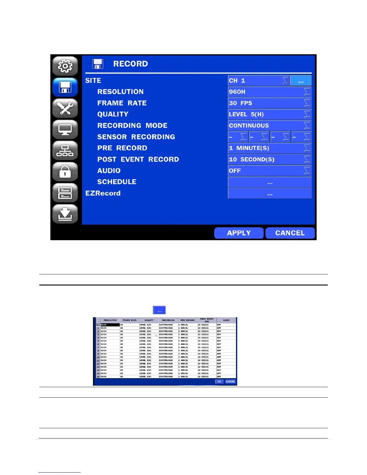 4-3. Setup – RECORD Mode