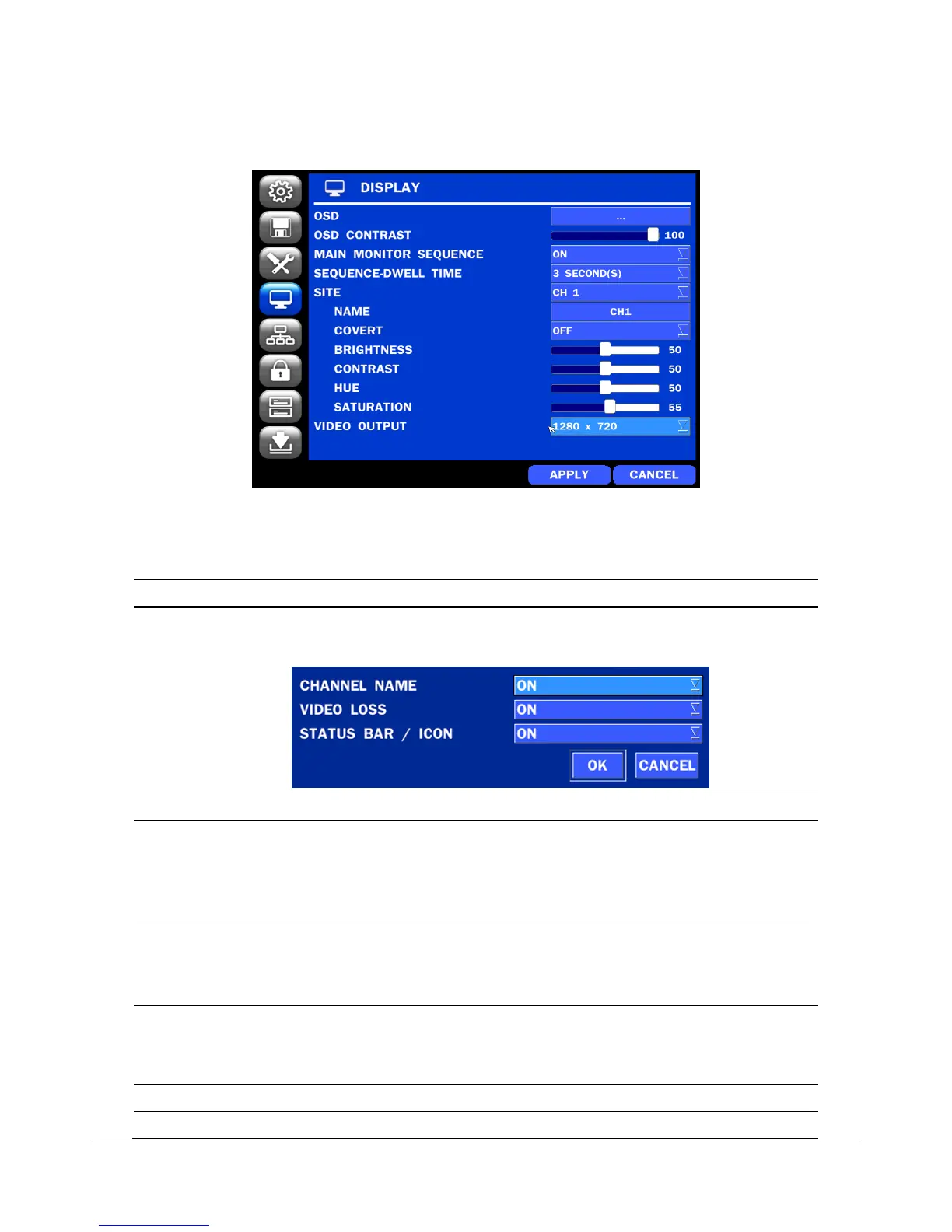 (Channel Name, Video Loss, Status Bar/ Icon)
