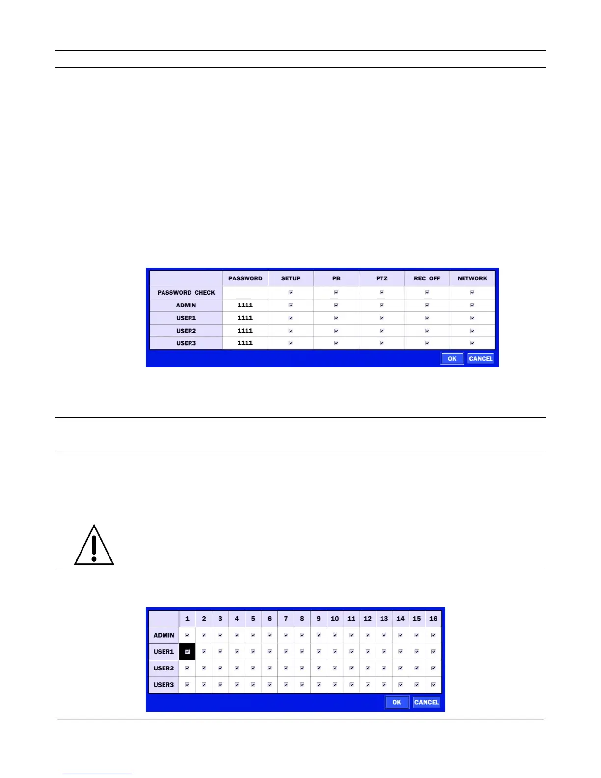 Blank Checkbox: The DVR will not ask for a password when the given function is