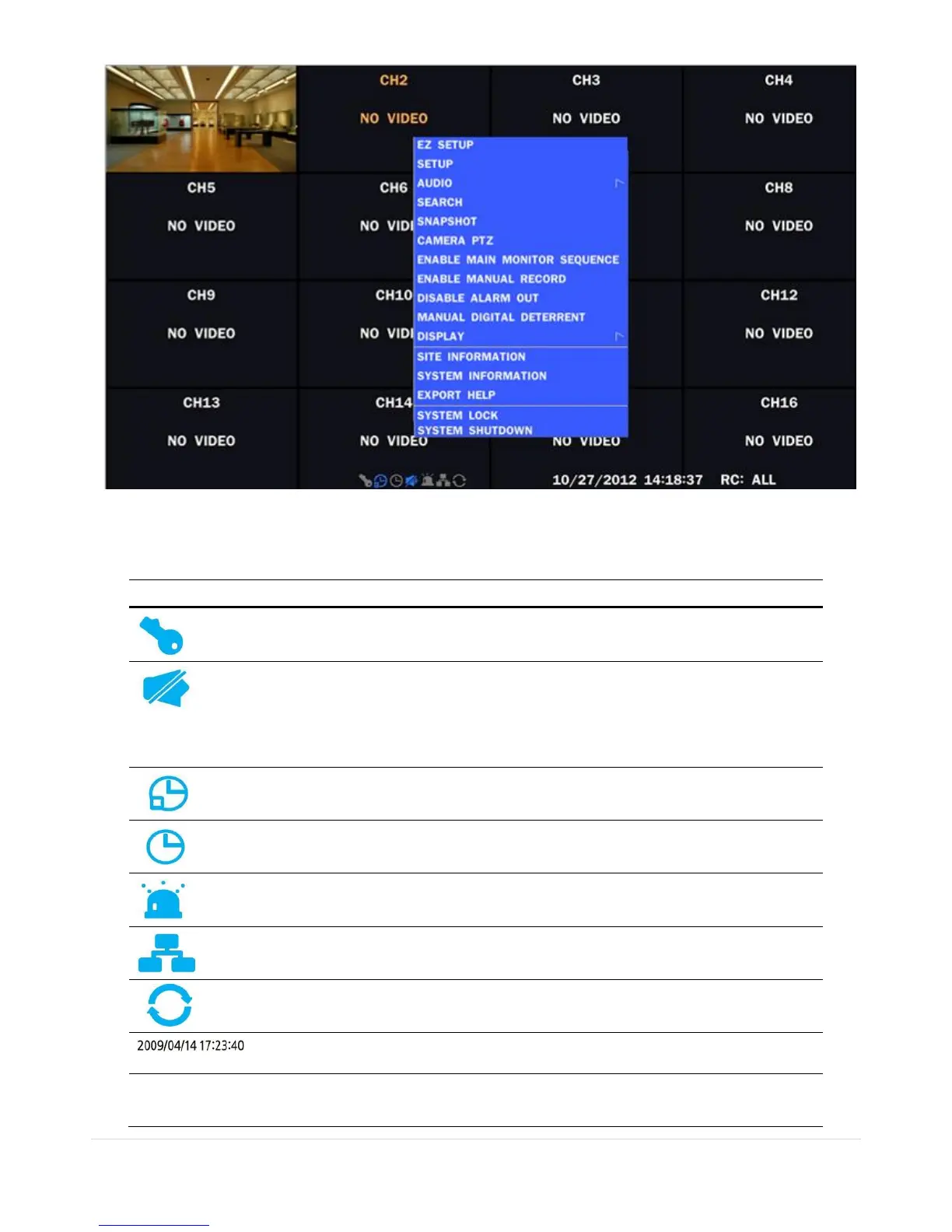 Indicates the DVR is locked. Note) to unlock, right click on the live view