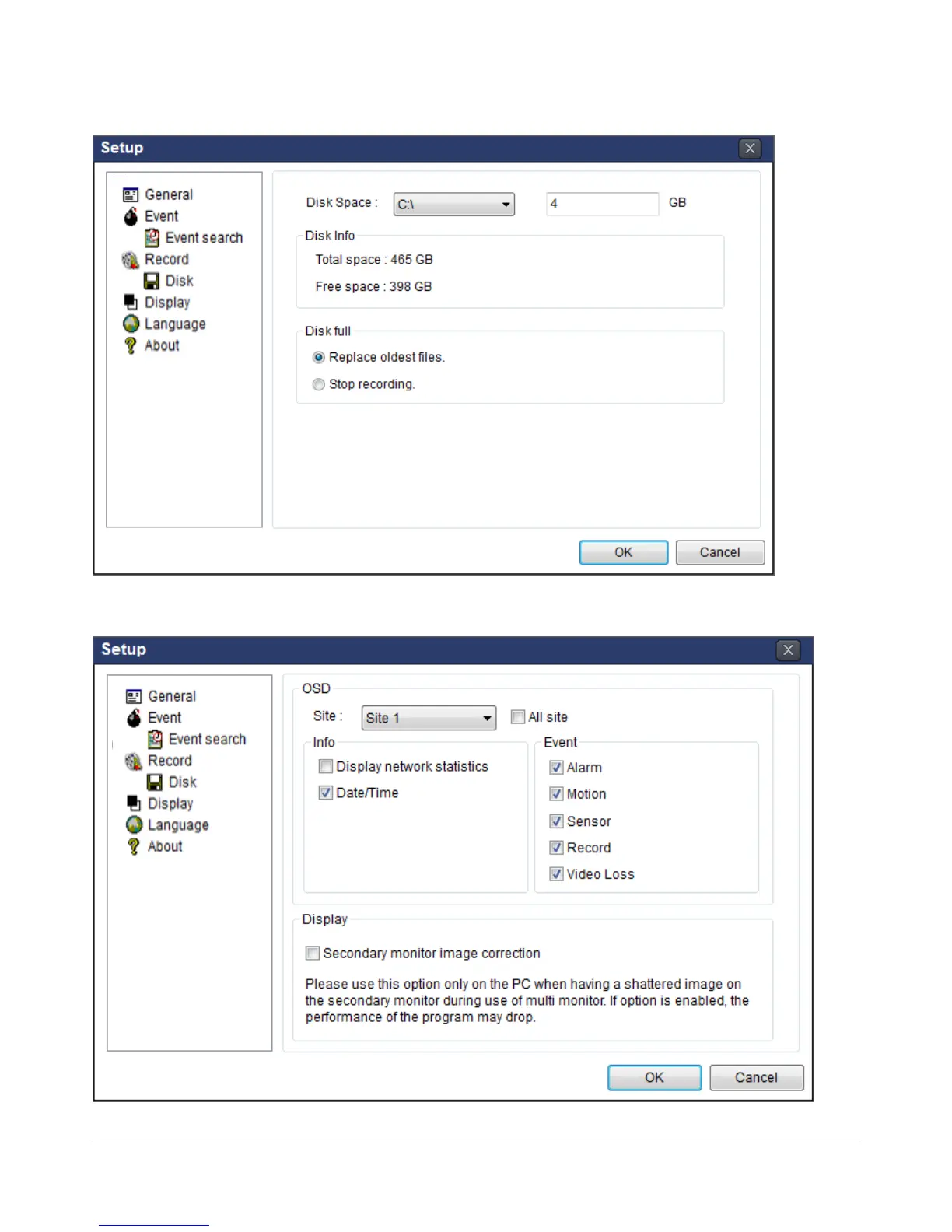 Record Local Storage Setup: You can select the local disk to record and the amount of disk space you