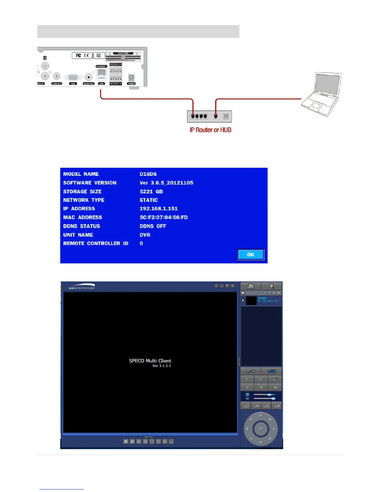 2. Check the IP address from SETUP > SYSTEM > DESCRIPTION or SETUP>NETWORK of DVR.
