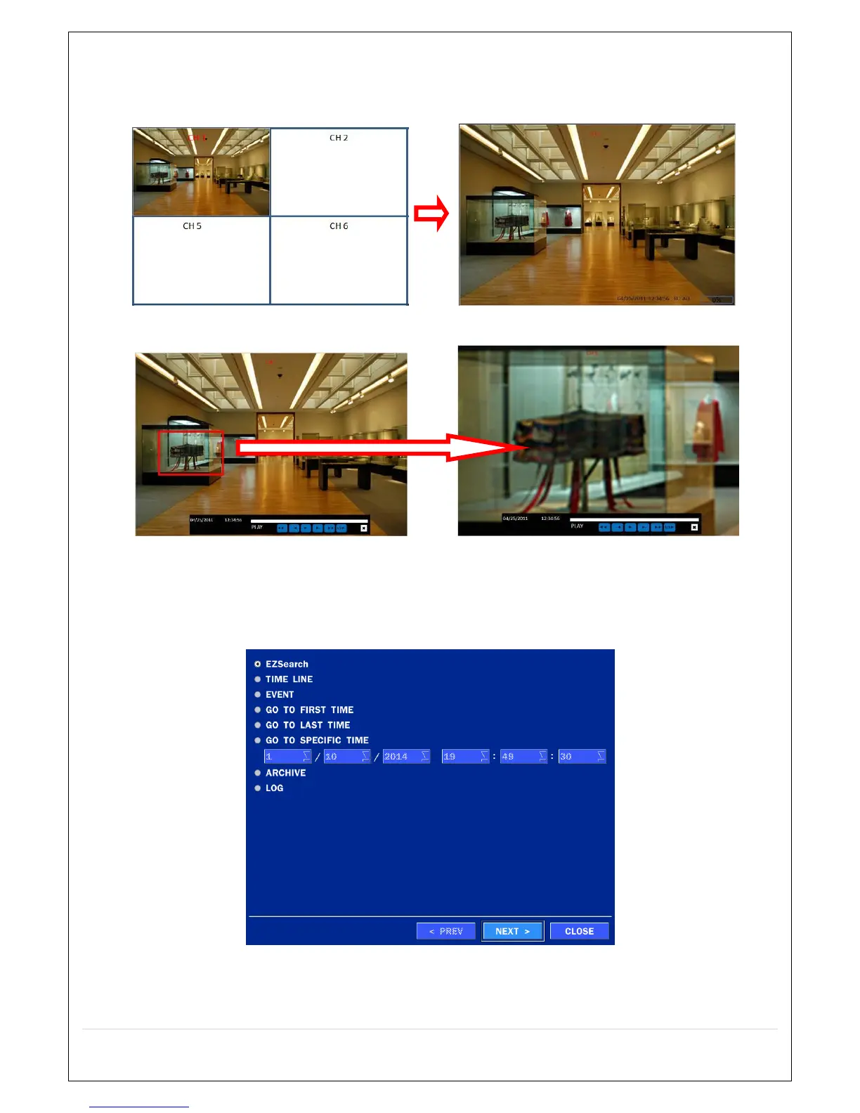 There are 8 search options available such as EZSEARCH, TIME LINE (Calendar), EVENT, GO TO FIRST