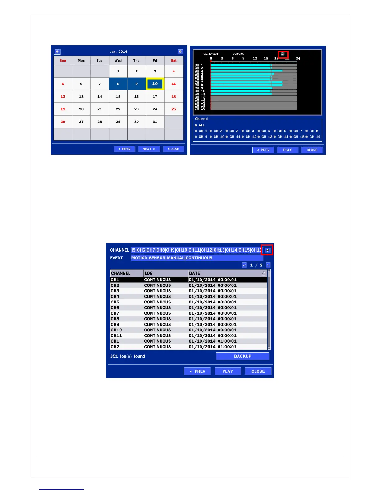 Figure 5.3.2.1. Calendar Screen Figure 5.3.2.2. Time-Line Search Screen