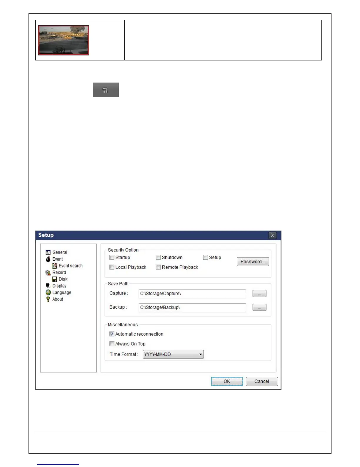 Click the setup icon to setup the configuration of Multi Client software. The SETUP window is