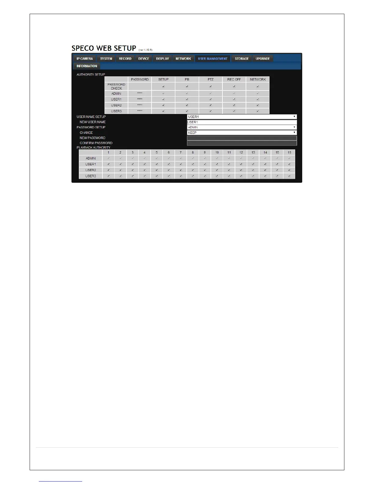 PLAYBACK AUTHORITY: User can select which users have access to which channels.