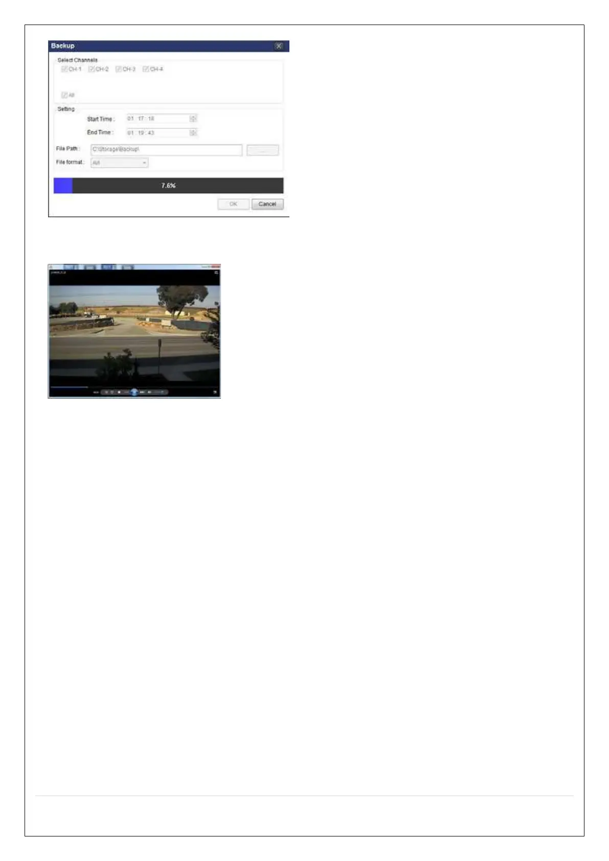 7. AVI video data is recorded as selected in AVI Backup window. AVI format video can be played back by