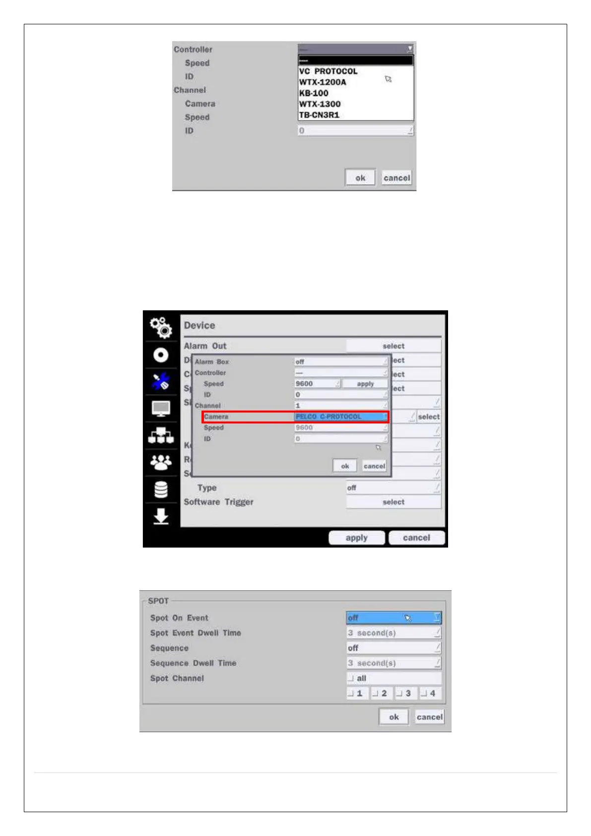 - How to set (Setup > Device > PTZ & Controller > PELCO C-PROTOCOL)