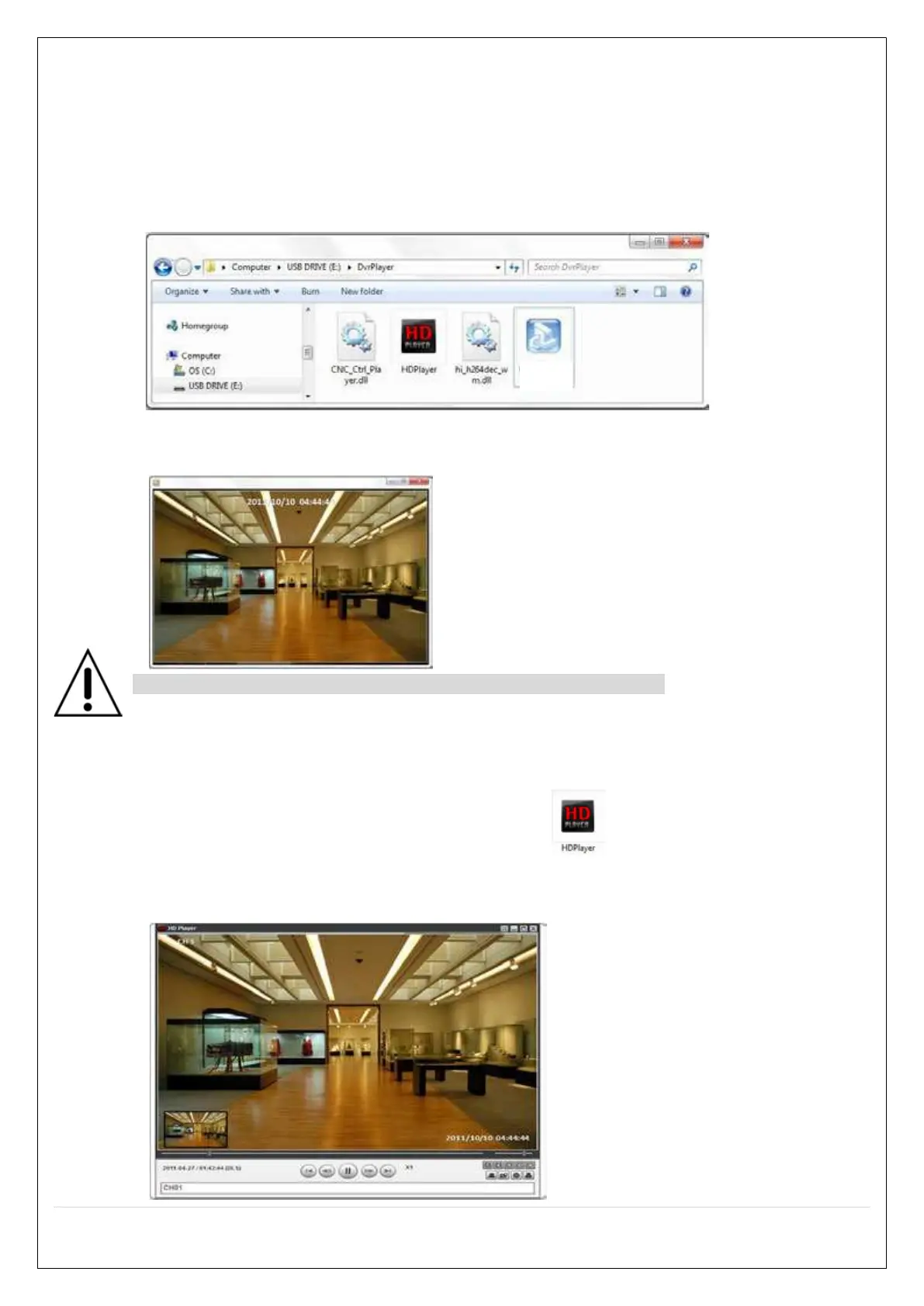 “DvrPlayer” folder on USB flash drive with video. Use the mouse scroll to use digital zoom in and out