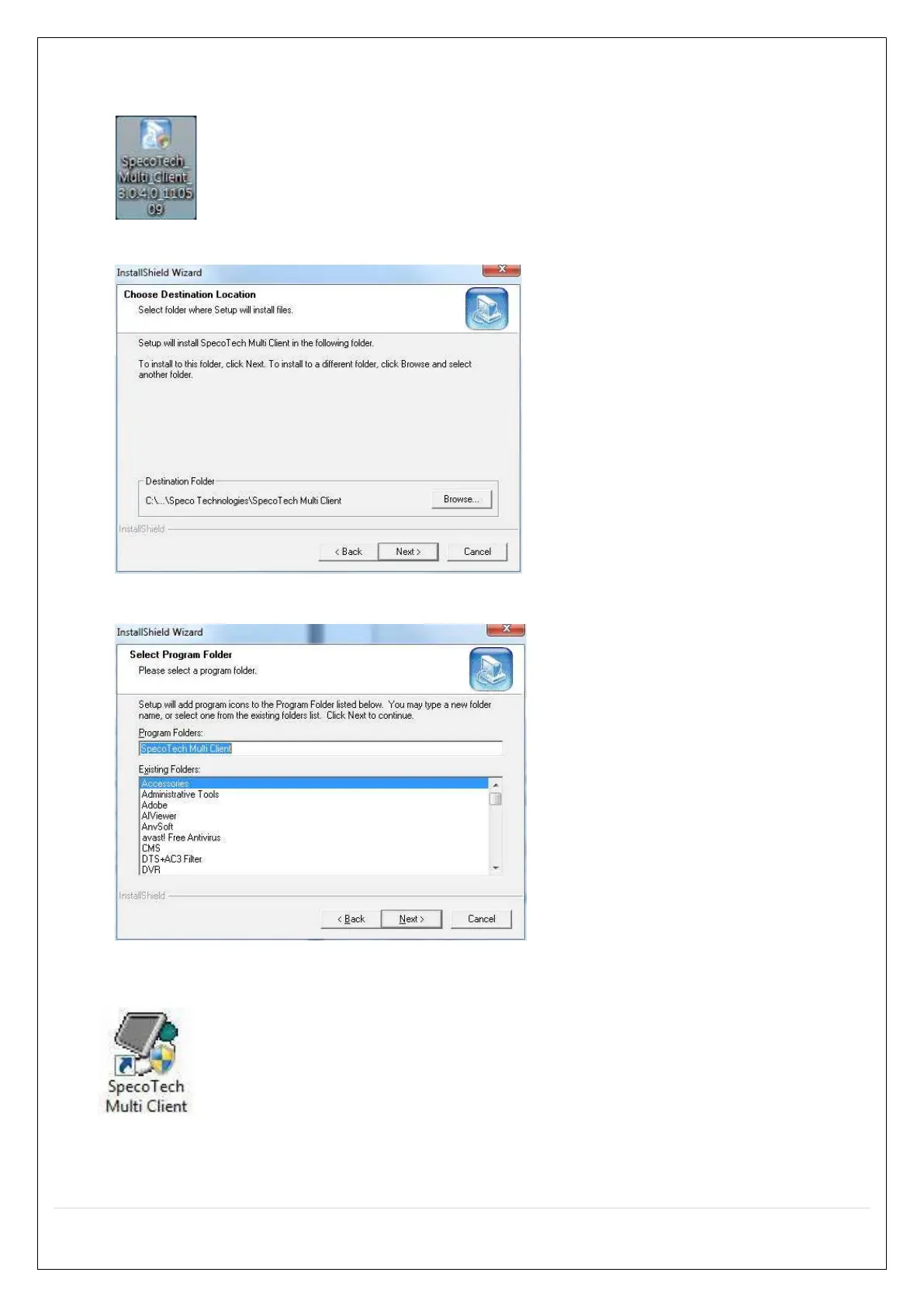 1. Insert the provided CD in the CD drive and double-click “SpecoTech Multi Client (XXXX).exe”