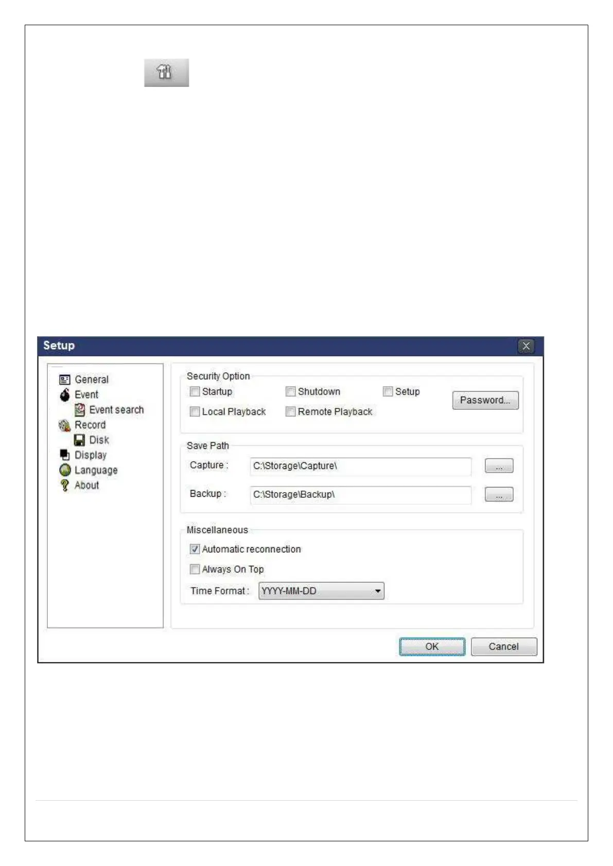 Click the setup icon to setup the configuration of SpecoTech Multi Client software. The SETUP