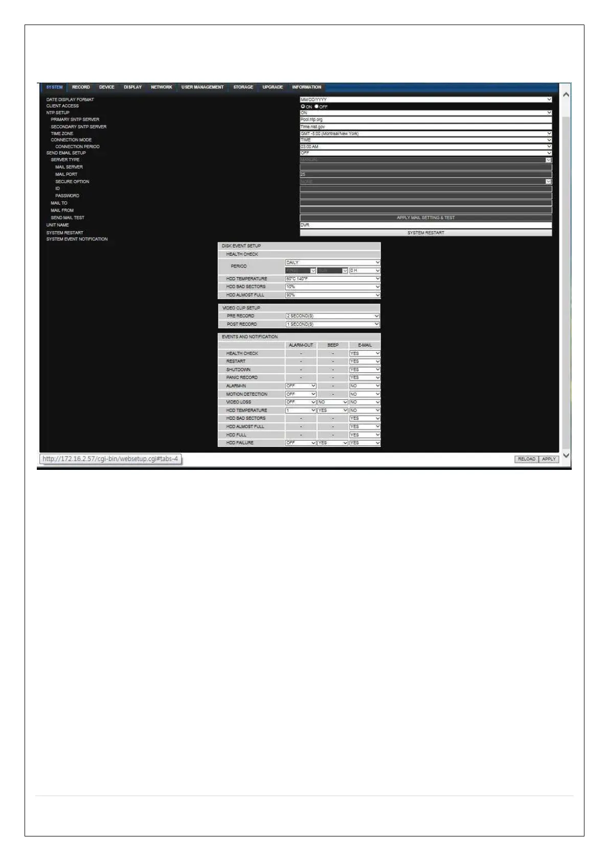 NTP SETUP: Sets whether to synchronize the time using NTP server or not.