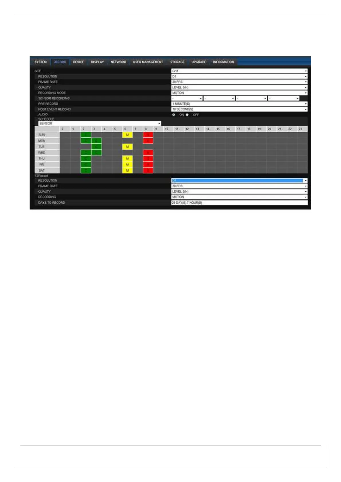 o RECORD DAYS: By the setting value, the Recording Days will change accordingly.