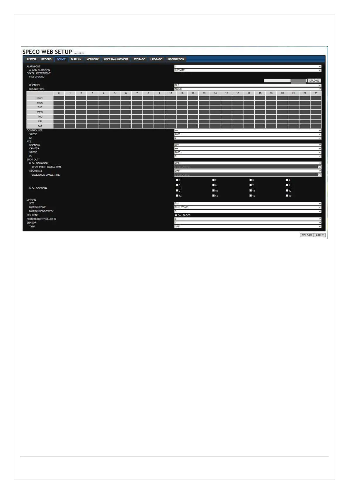 Select Device to set Spot Out, Enable/Disable CVBS Out, motion zone.