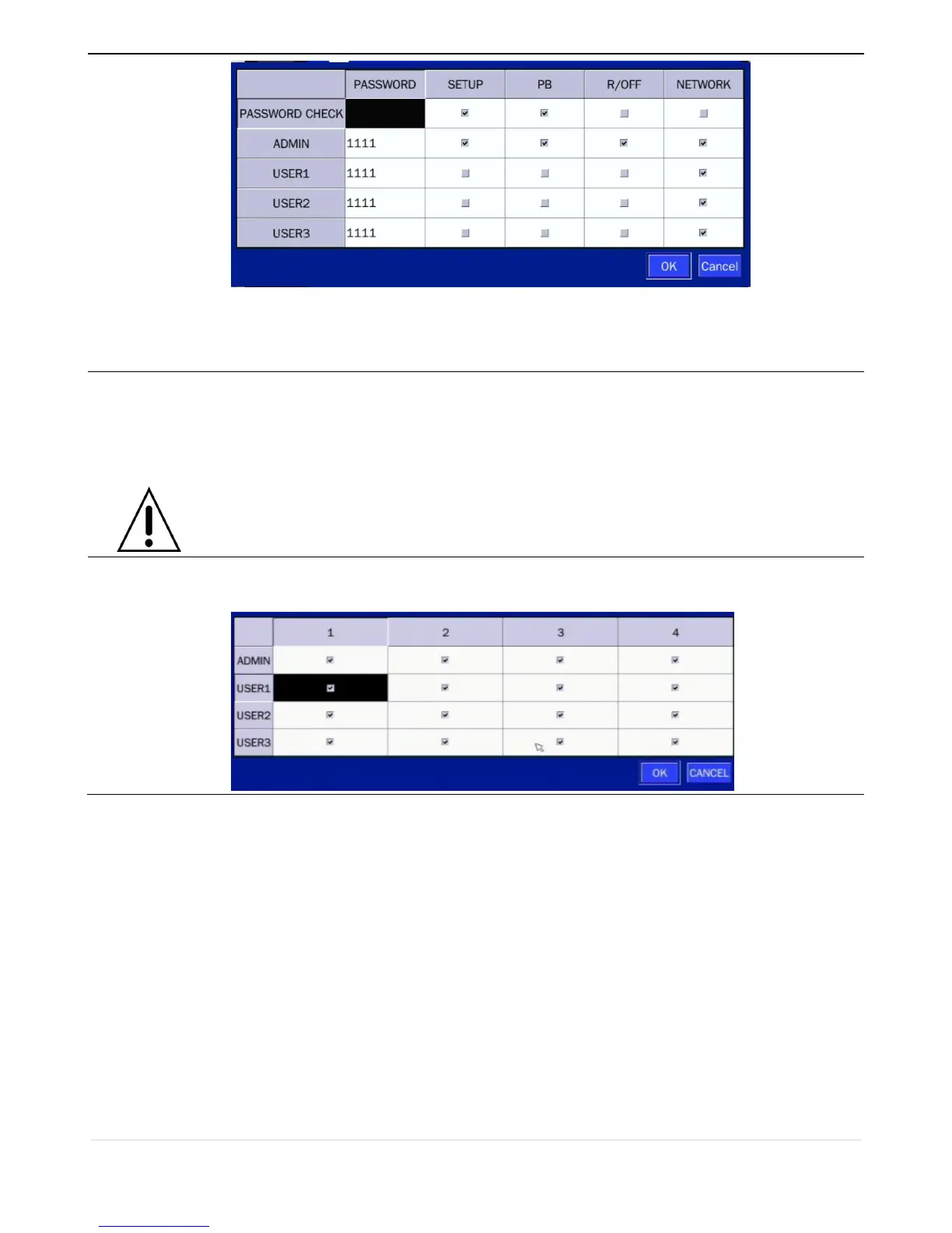Checked box: authorized to playback. Blank check box: no authority.