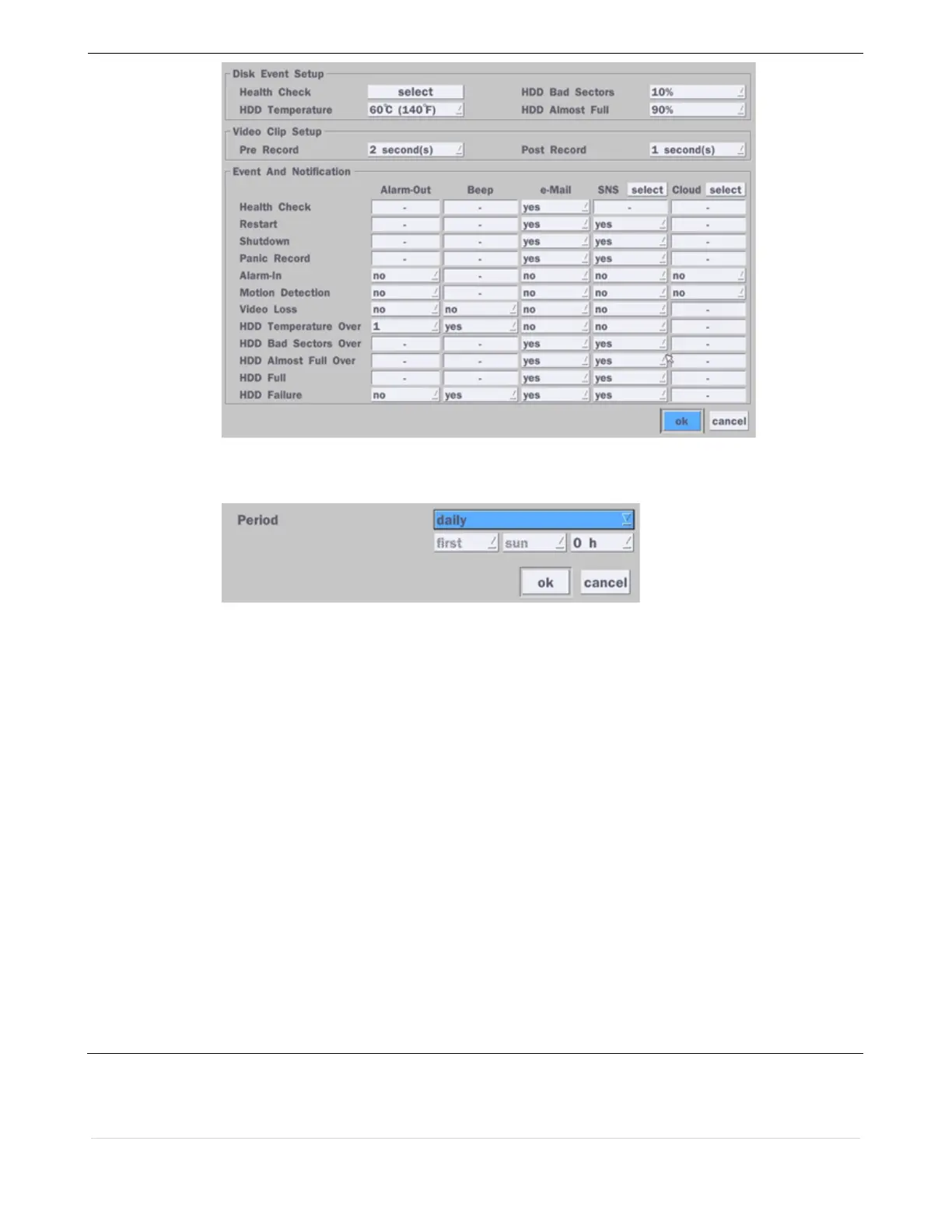 HDD Temperature Over – Enable Email, Beep and Alarm output Notification when