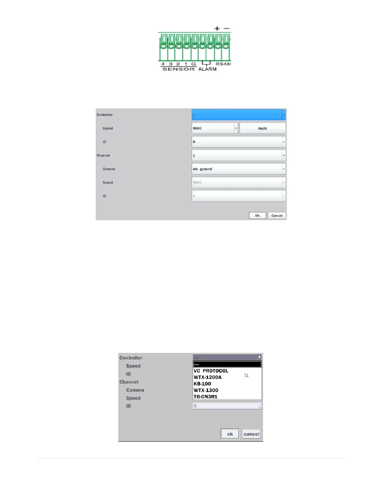 Controller (Keyboard Controller): If a PTZ controller is used, select a controller protocol from Controller