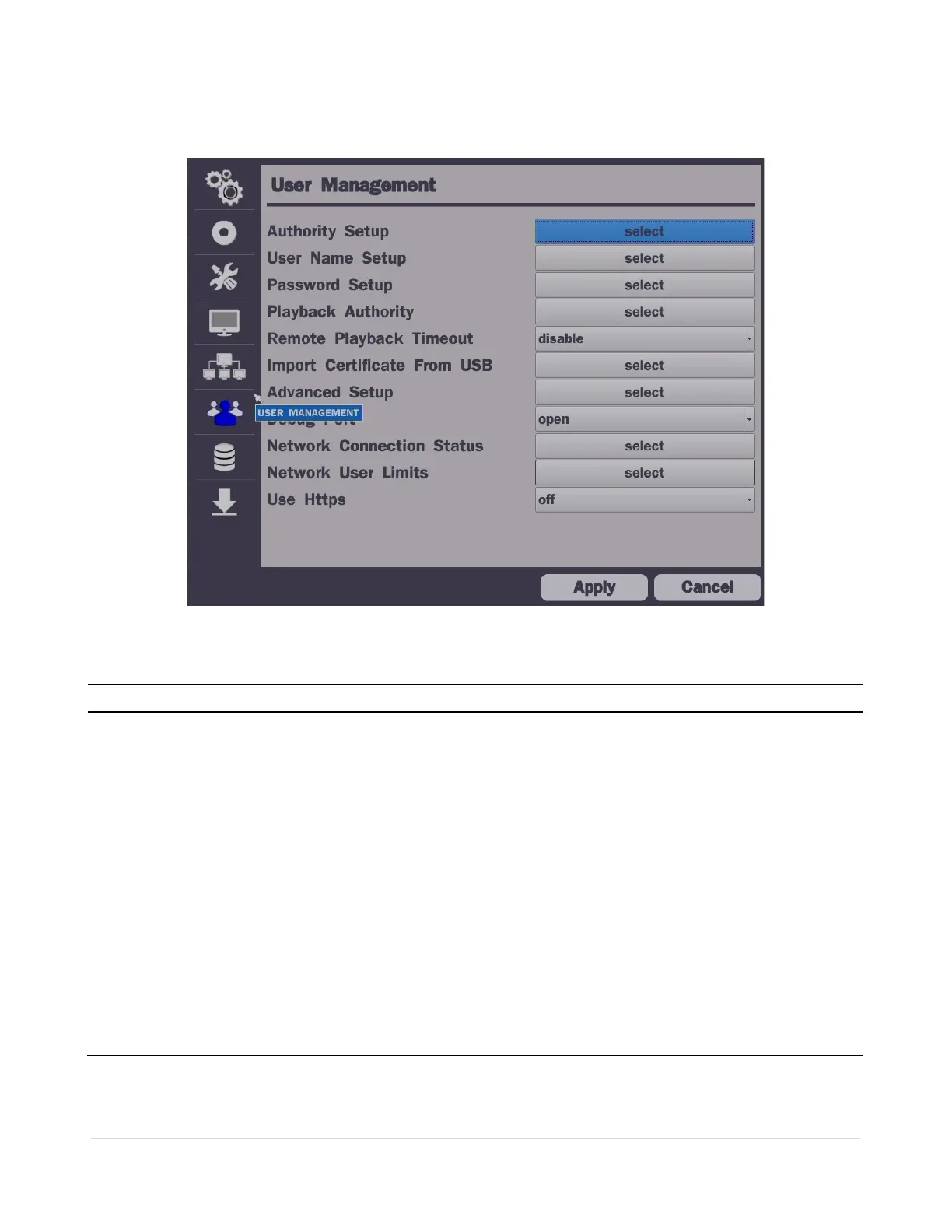 Figure 4.7.1. User Management Setup Screen