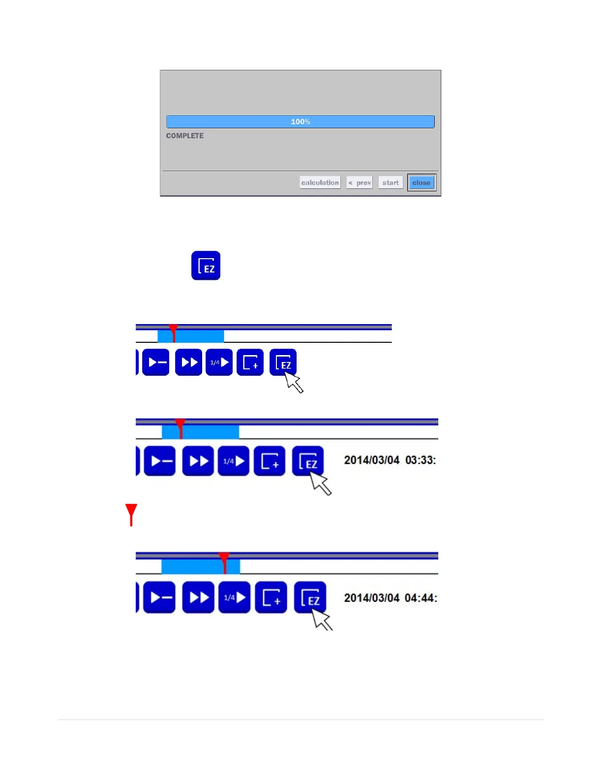 3. Move time bar cursor to the time of end of backup and press EZCopy button. Then, EZCopy