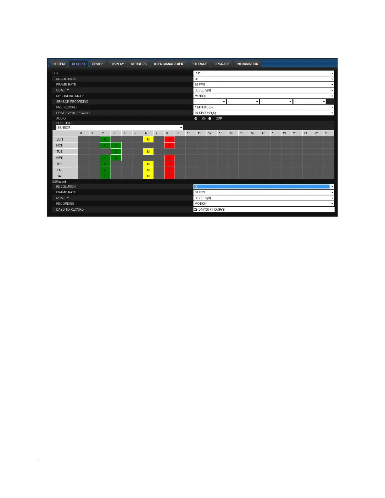o RECORD DAYS: By the setting value, the Recording Days will change accordingly.