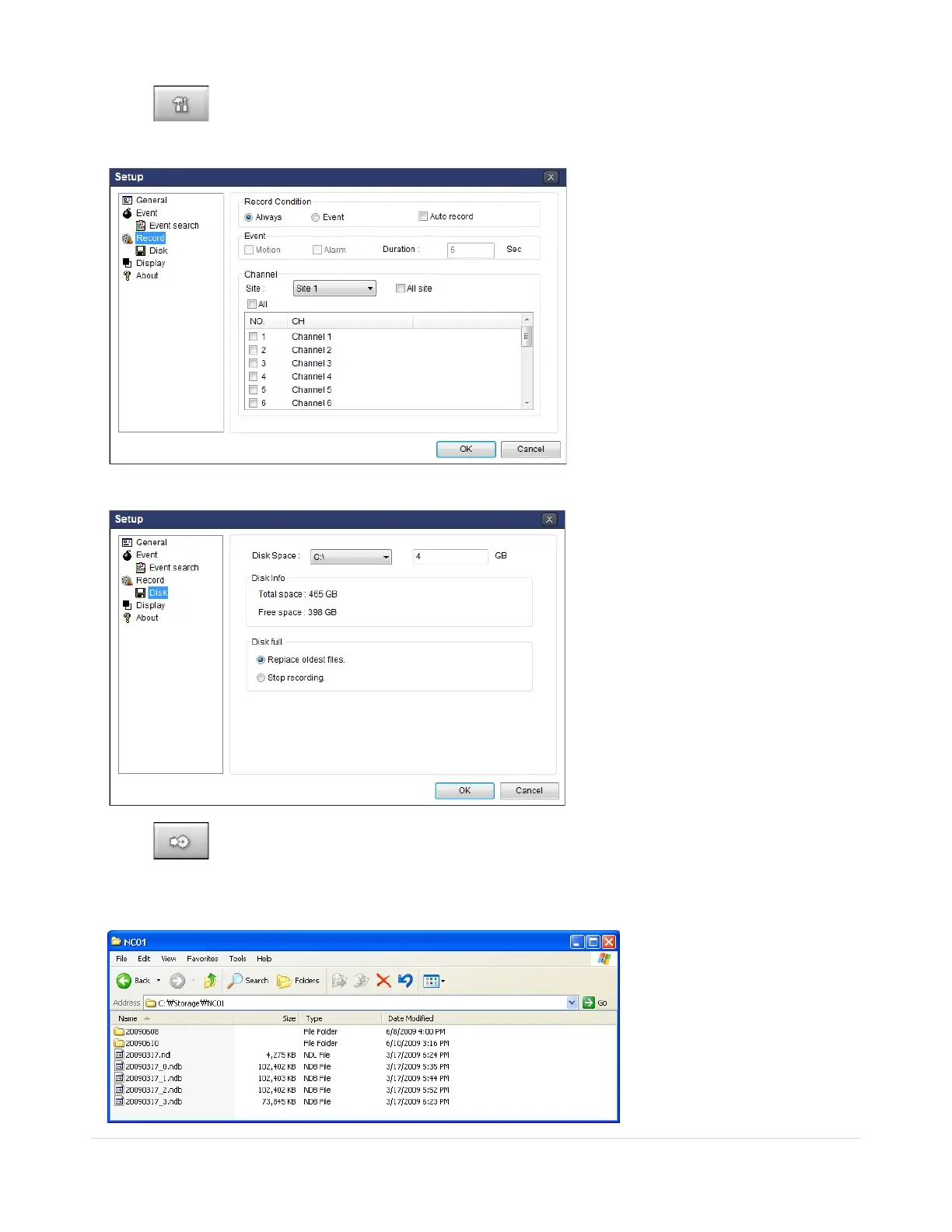 5. Live video data is recorded as set in Record and Disk setup. These video data can be searched and