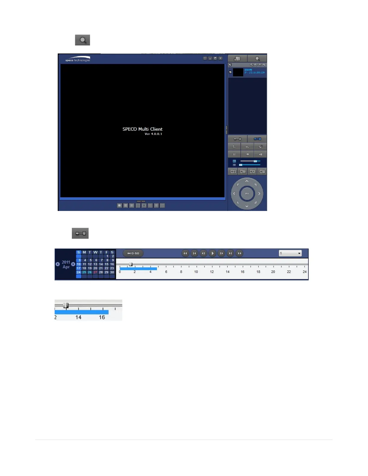 4. Move the marker on the timeline scale to where there is video data and press the PLAY button.