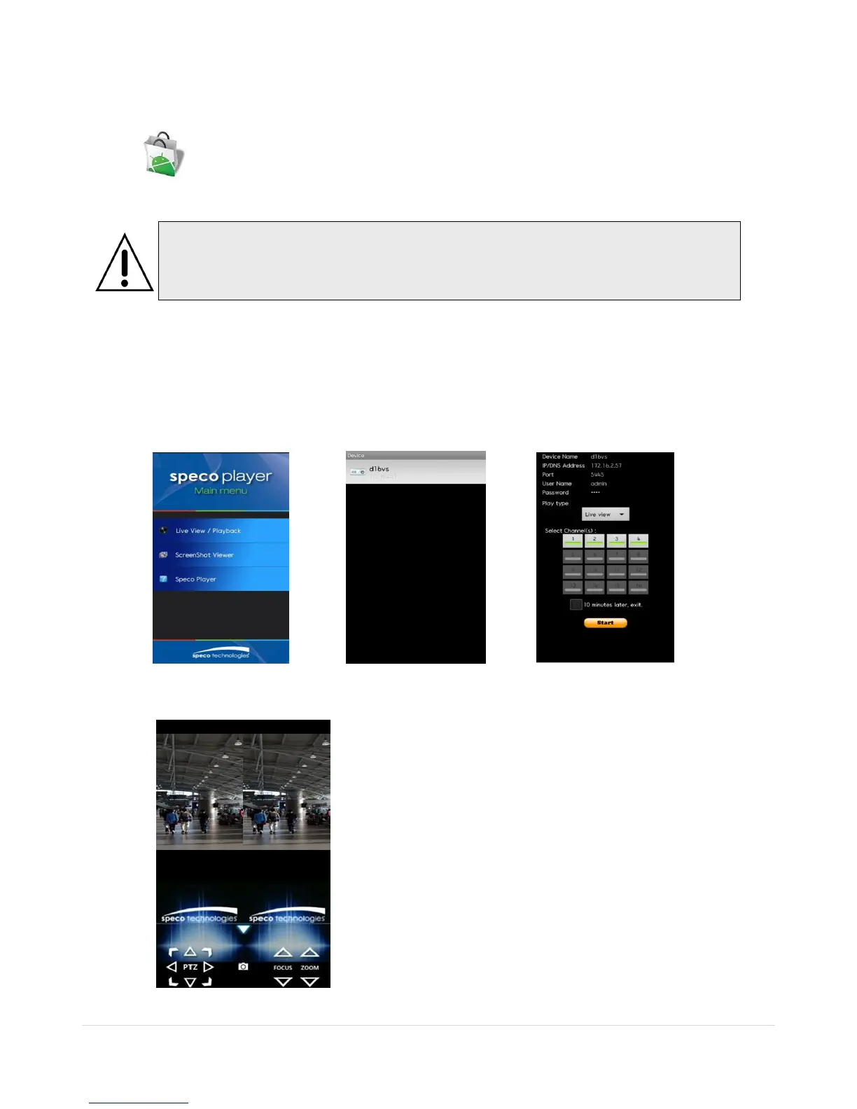 2. Search “Speco Player” in the Android Market and install the “Speco Player” app.