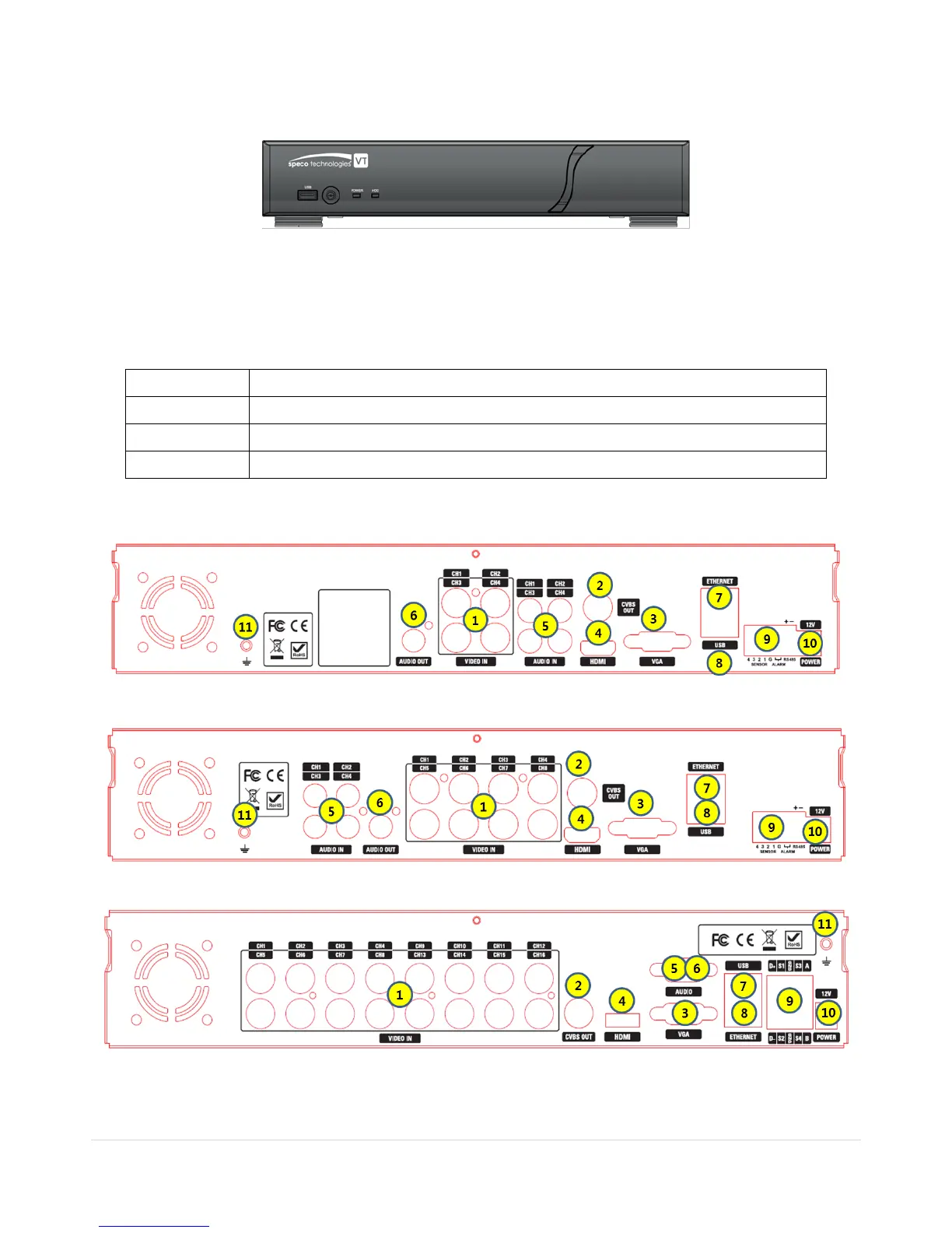 Speco D4VT - 3 Name, Function and Connection; Front Panel; Connectors