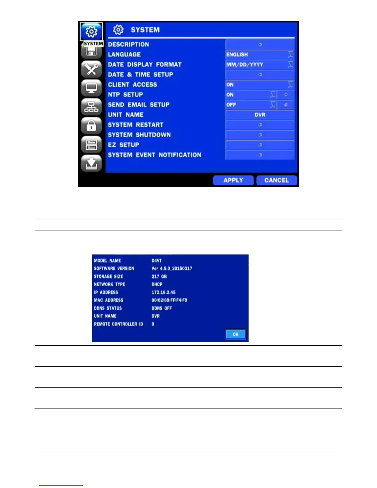 Figure 4.2.1. SYSTEM Setup Screen