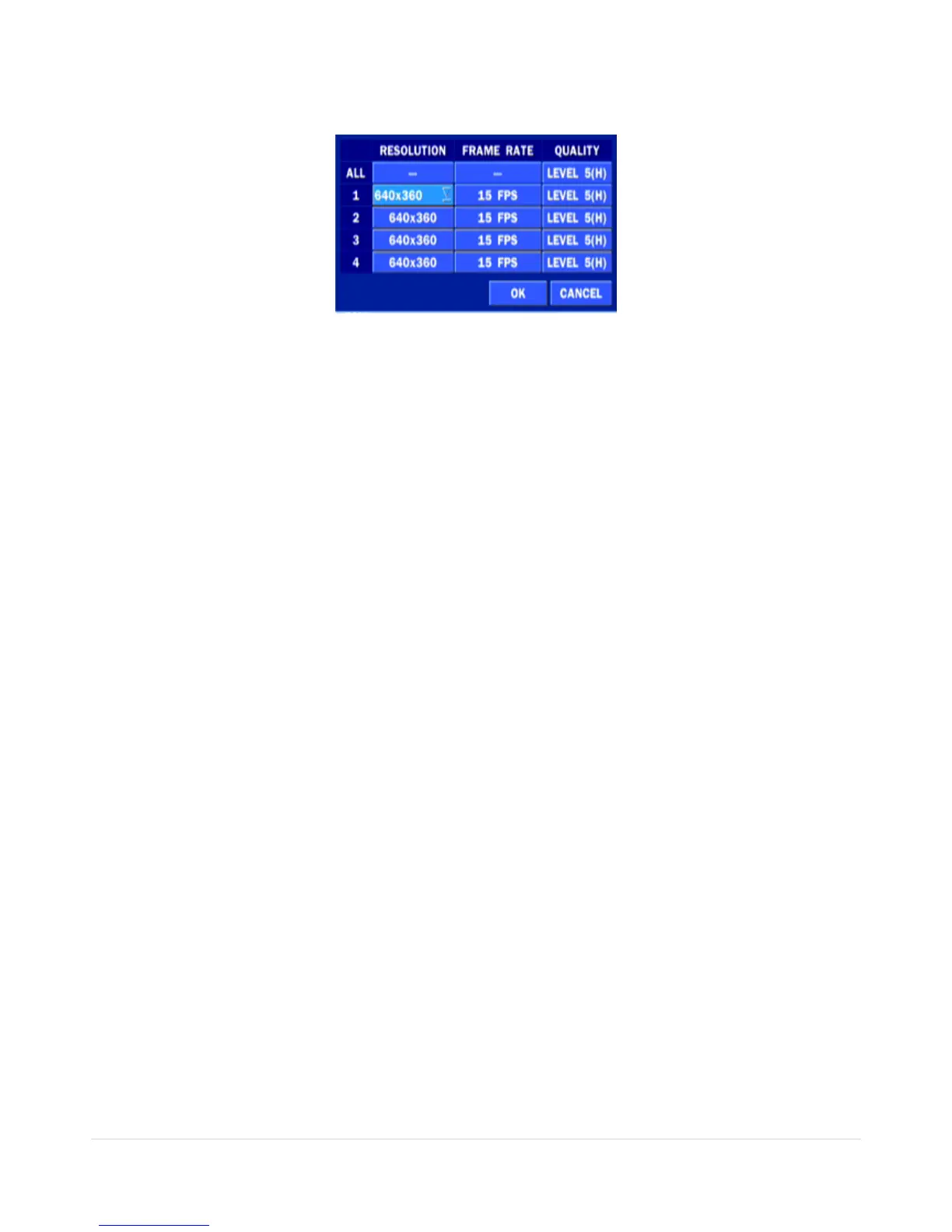 <Note> Individual Channels can be set with different RESOLUTION, FRAME RATE, and QUALITY.