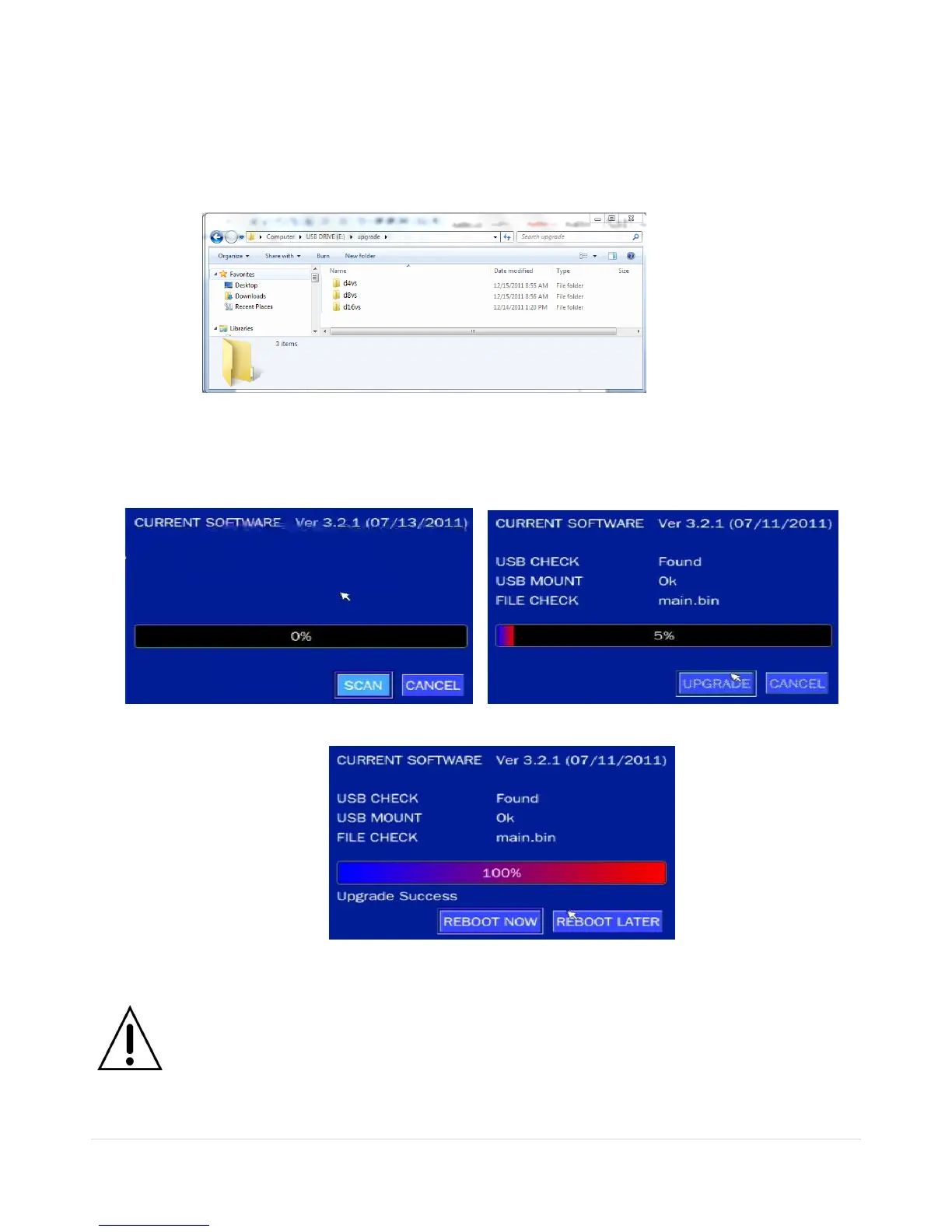 1. If selecting REBOOT LATER, the upgraded software will not be applied until the system
