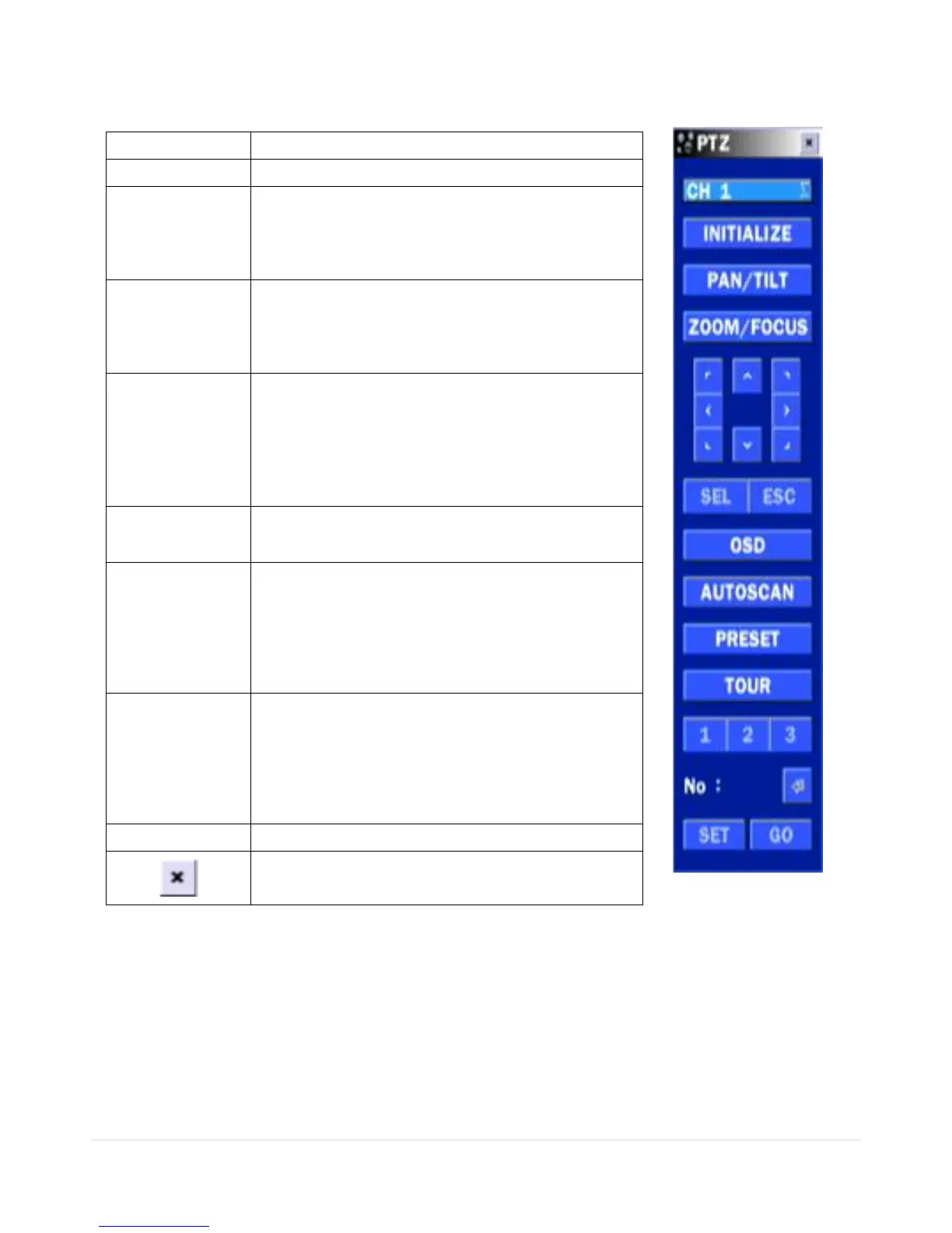 Table 5.1.3. Menu Items in PTZ Control Window