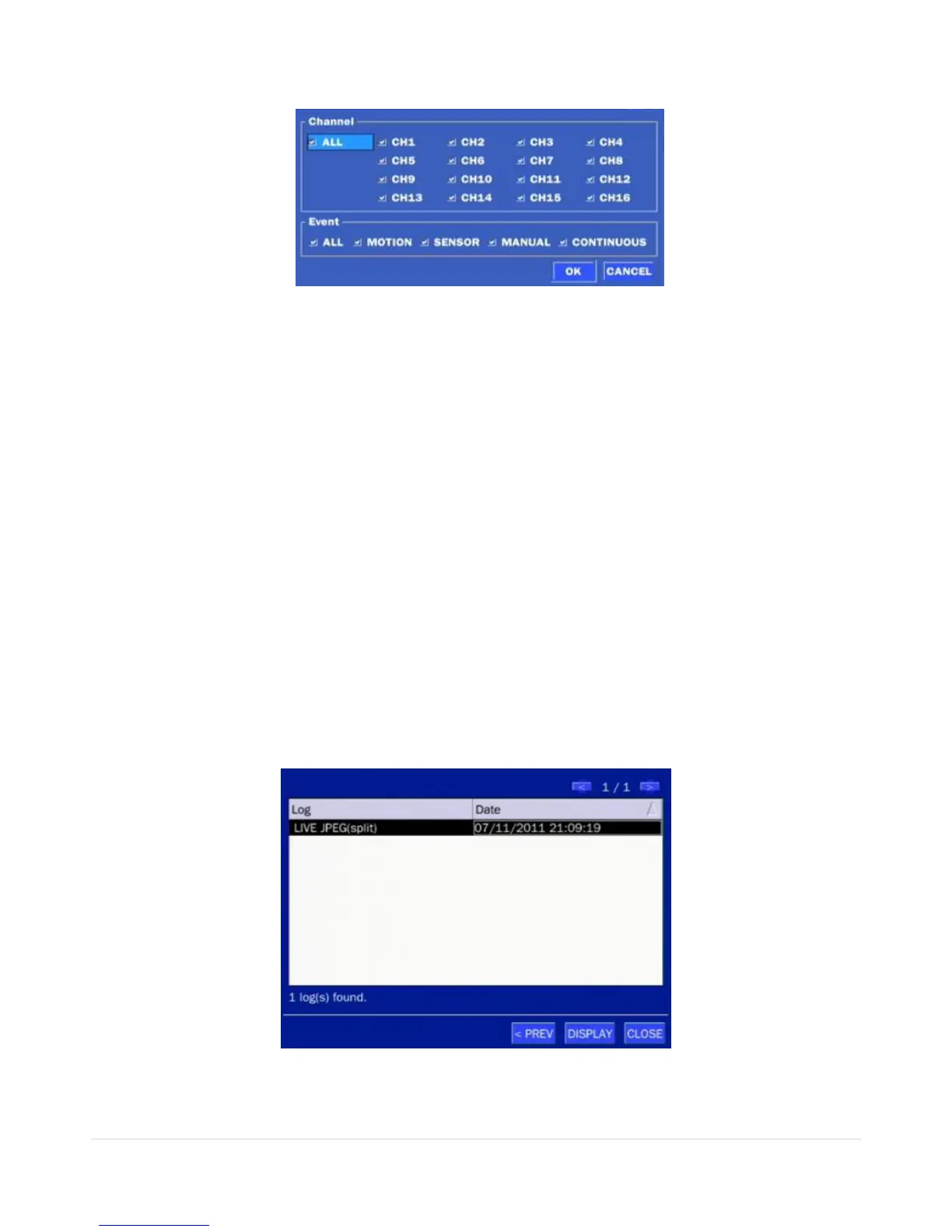 date and then the archived data will be displayed. Press the Display button to view the still image or the first