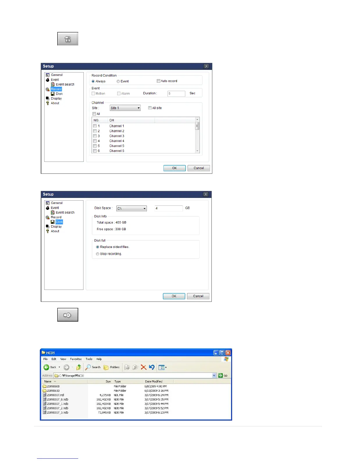 5. Live video data is recorded as set in Record and Disk setup. These video data can be searched and