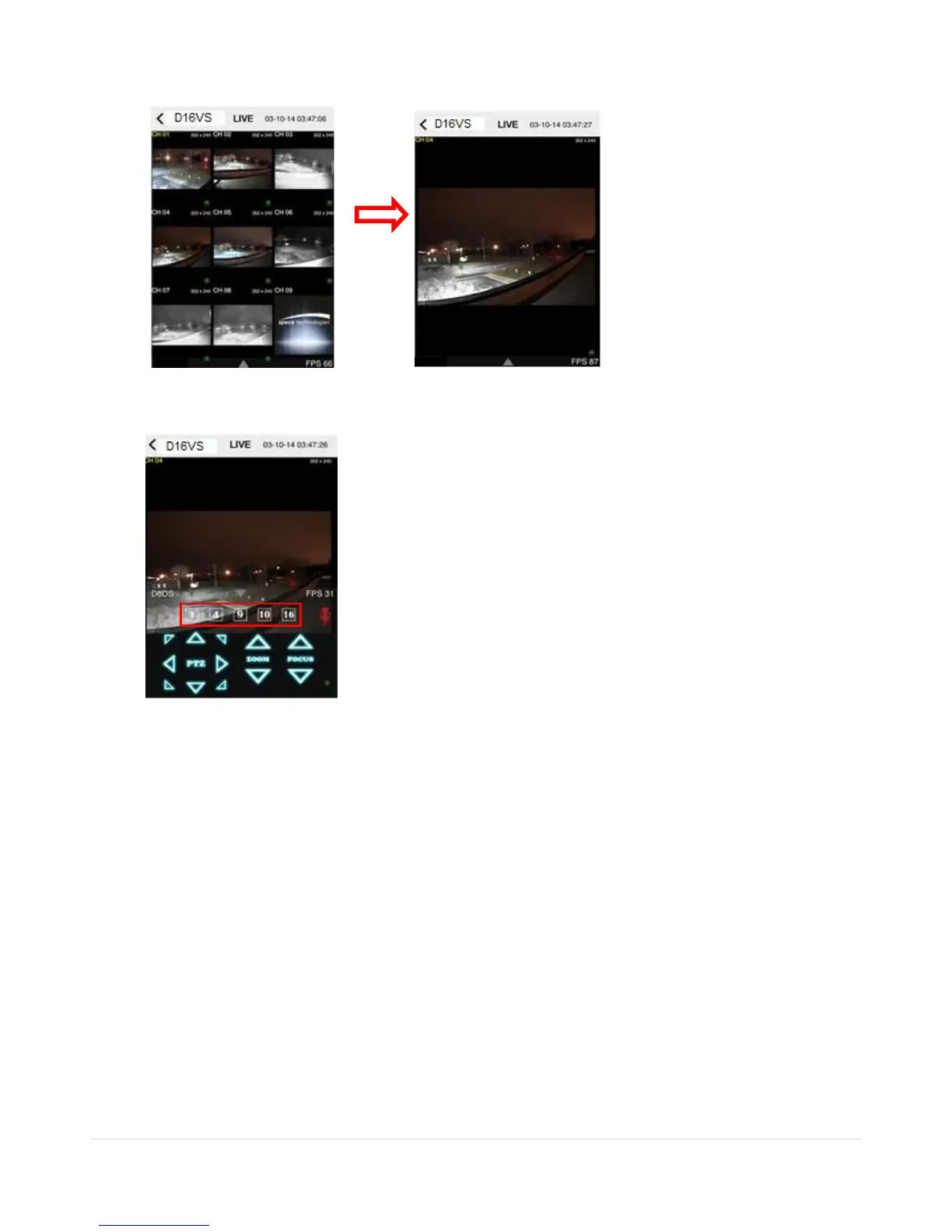 4. The app will display the selected channel(s). Double tap the channel screen to switch 1 channel display to 4,