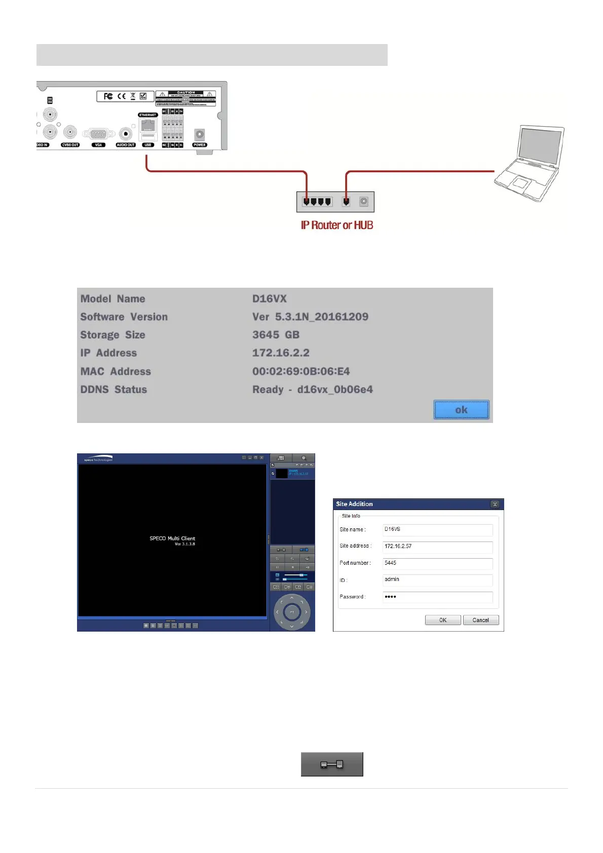 2. Check the IP address from SETUP > SYSTEM > DESCRIPTION or SETUP>NETWORK of DVR.