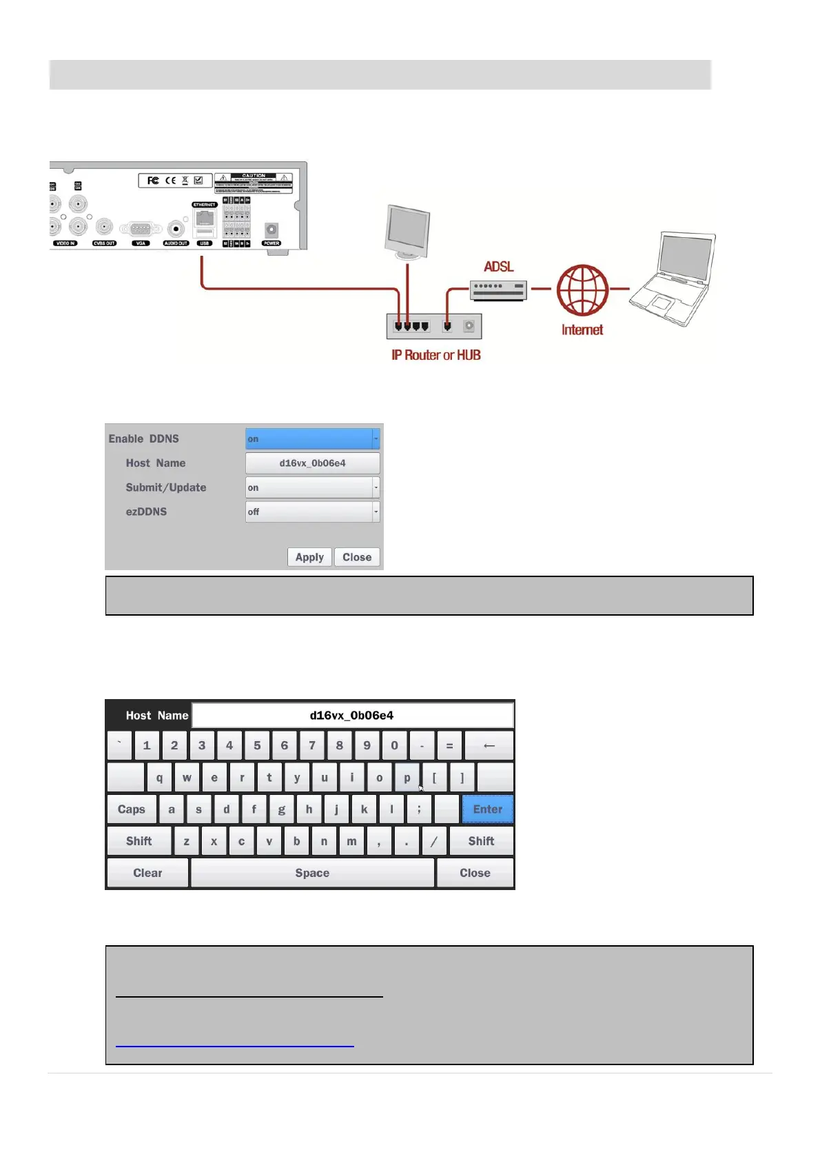 2. Go to SETUP>NETWORK>DDNS>HOST NAME. Manually enter a domain name using the virtual