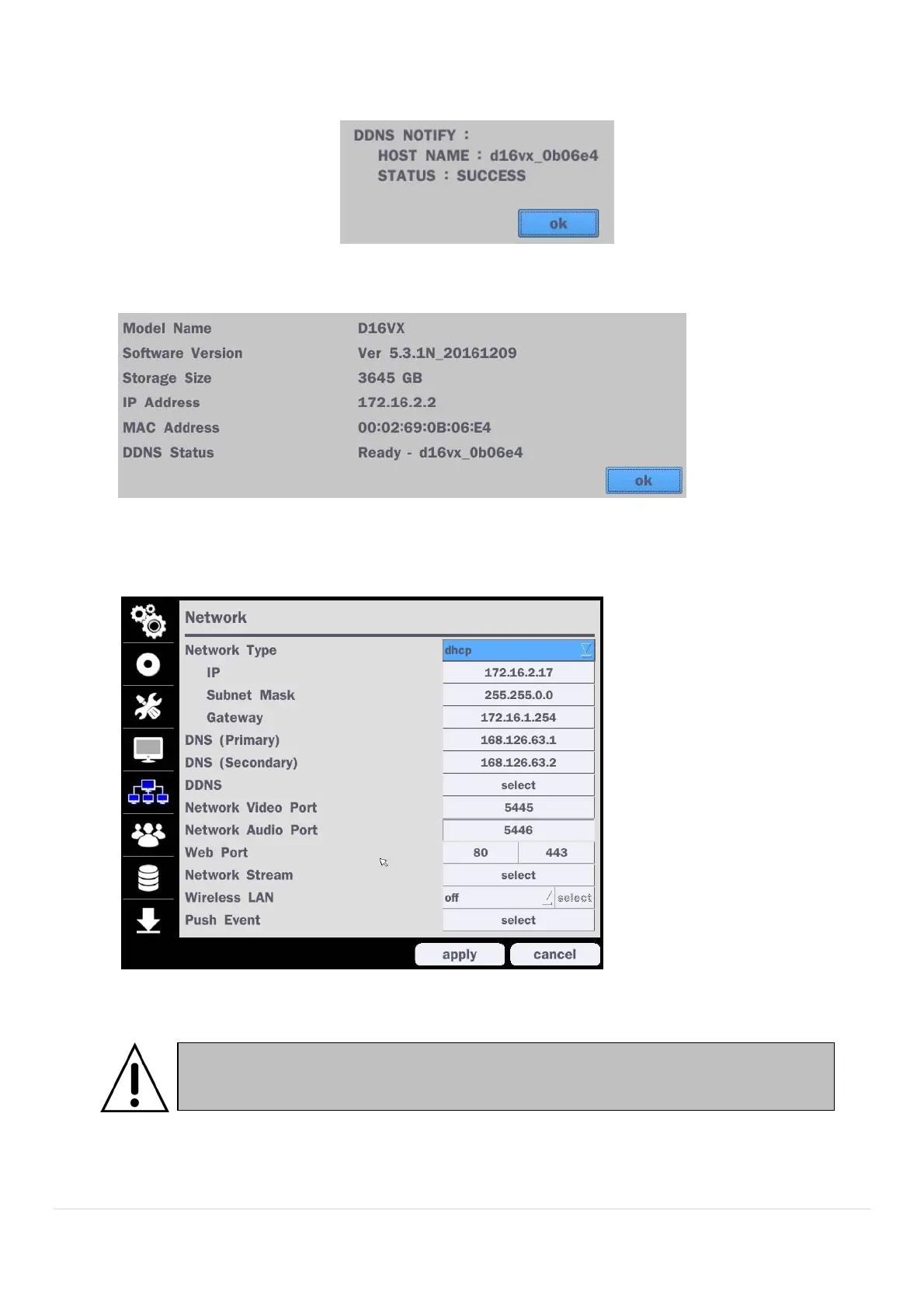 5. When you exit SETUP menu, DDNS NOTIFIY window will pop up.