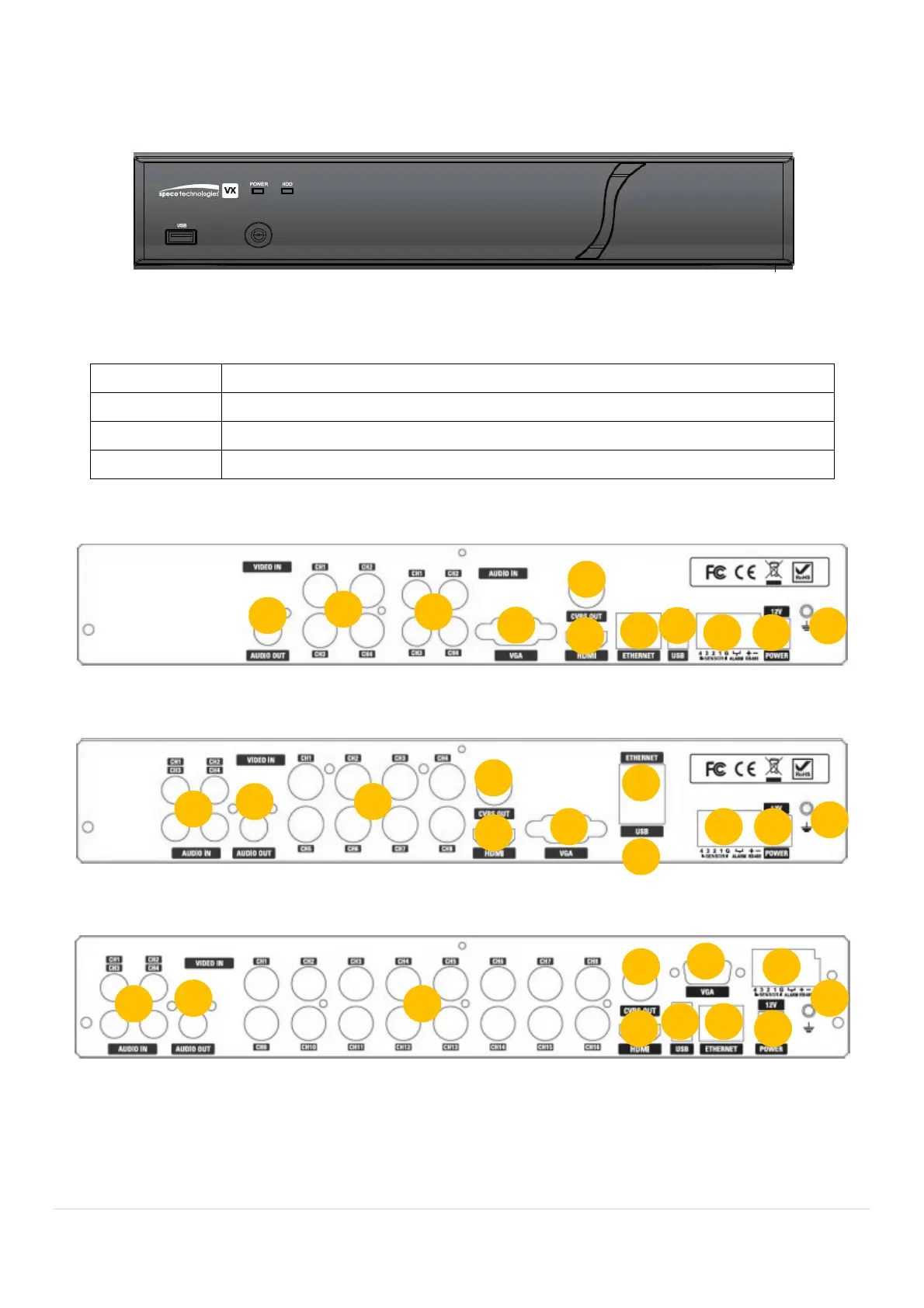 Table 3.1.1. Front LED and Port of DxxVX