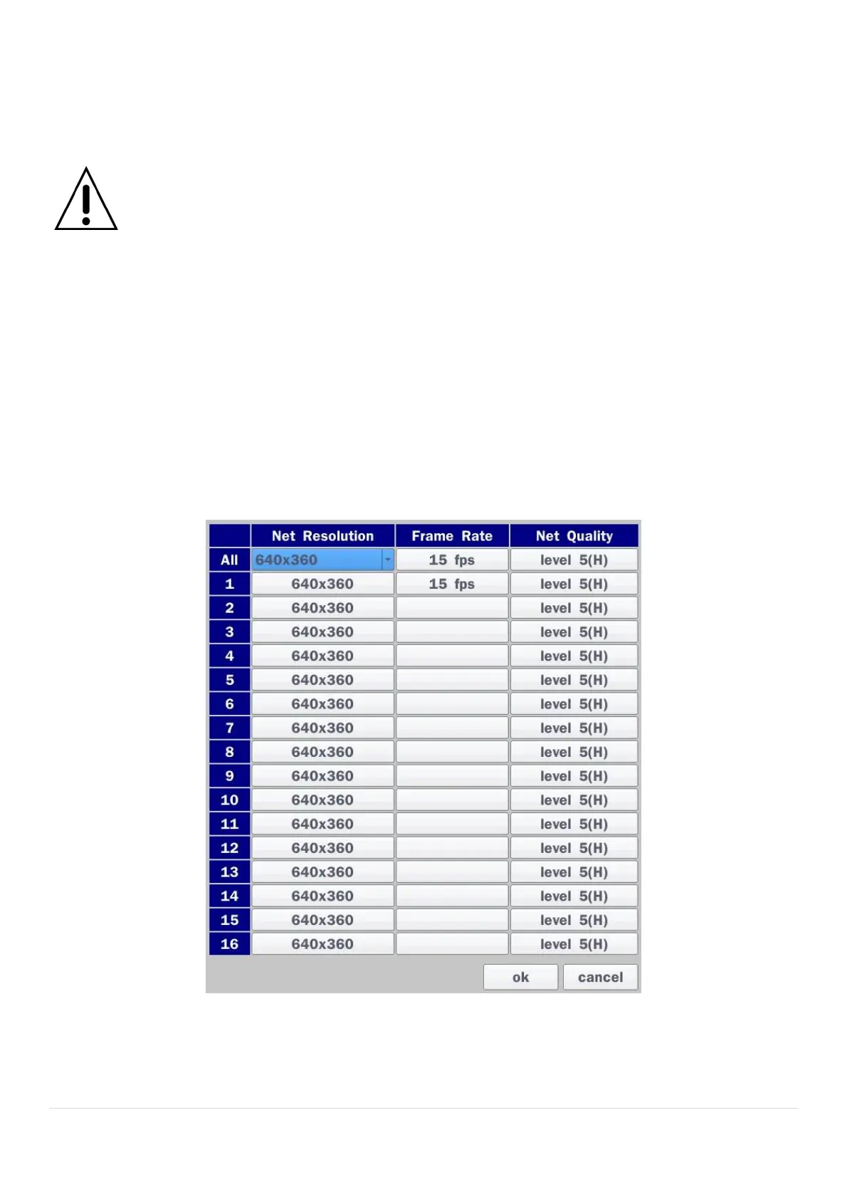 <Note> Individual Channels can be set with different Resolution, Frame Rate, and Quality.