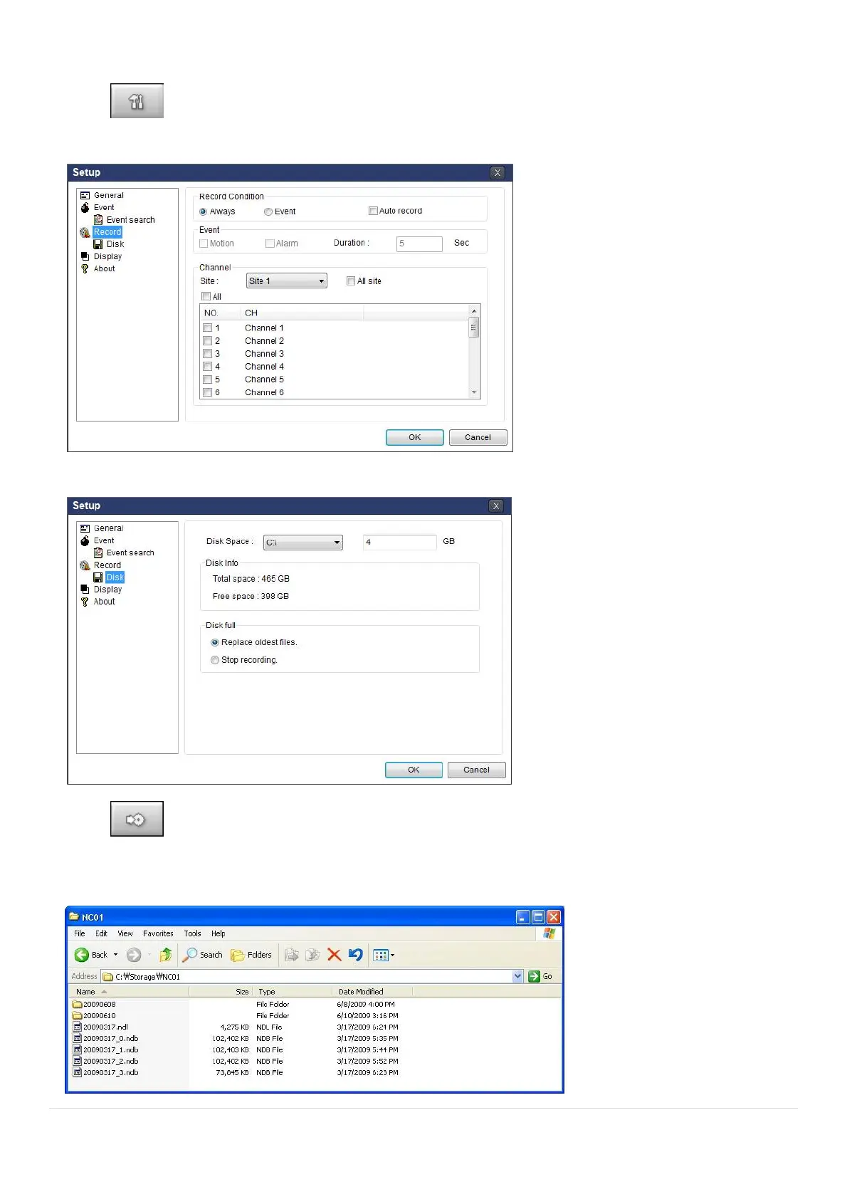 5. Live video data is recorded as set in Record and Disk setup. These video data can be searched and