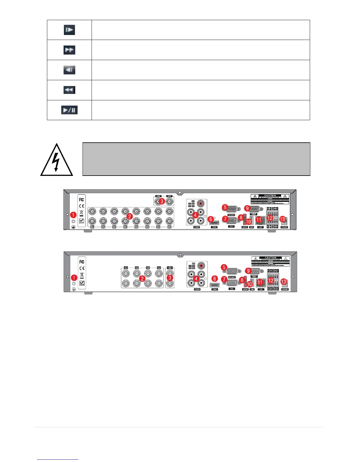 ⑨ AUDIO IN: Audio inputs connections for channels 5-8 or 5-16 through external cable
