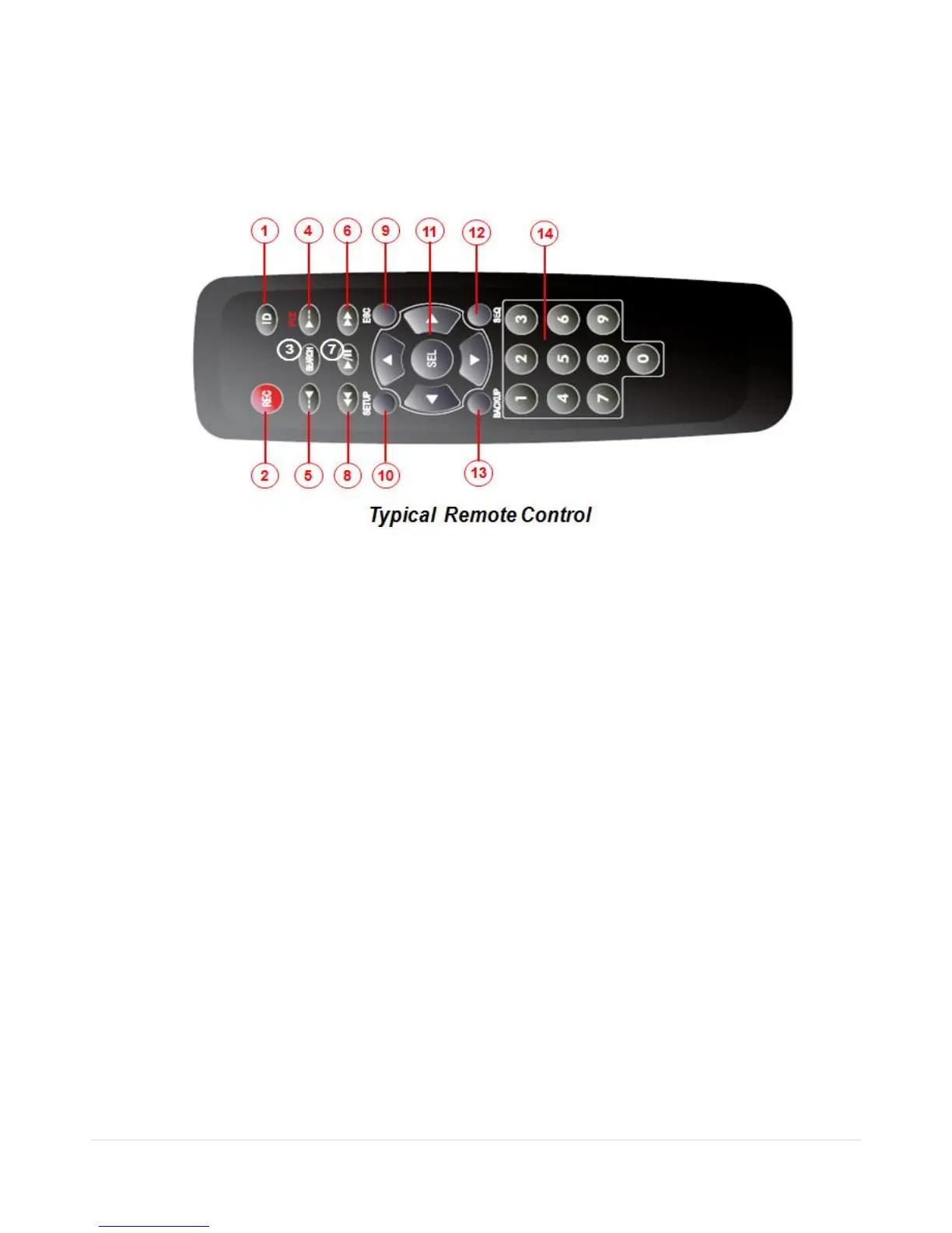 ⑭ 0~9: To select channel (1,2,3,..) or to enter a DVR ID number or use as number key.