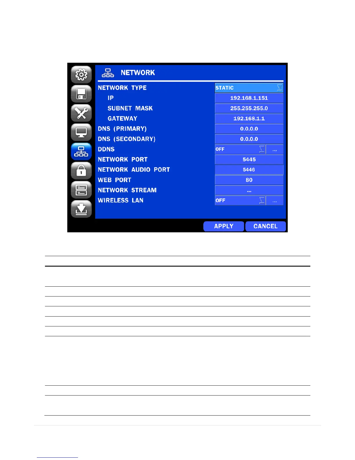 When in Static: Enter Primary DNS address that is assigned for the DVR