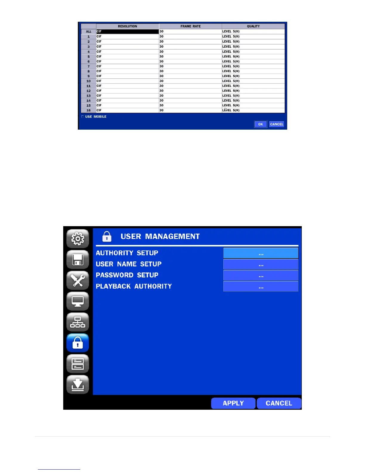 Figure 4.7. USER MANAGEMENT Setup Screen